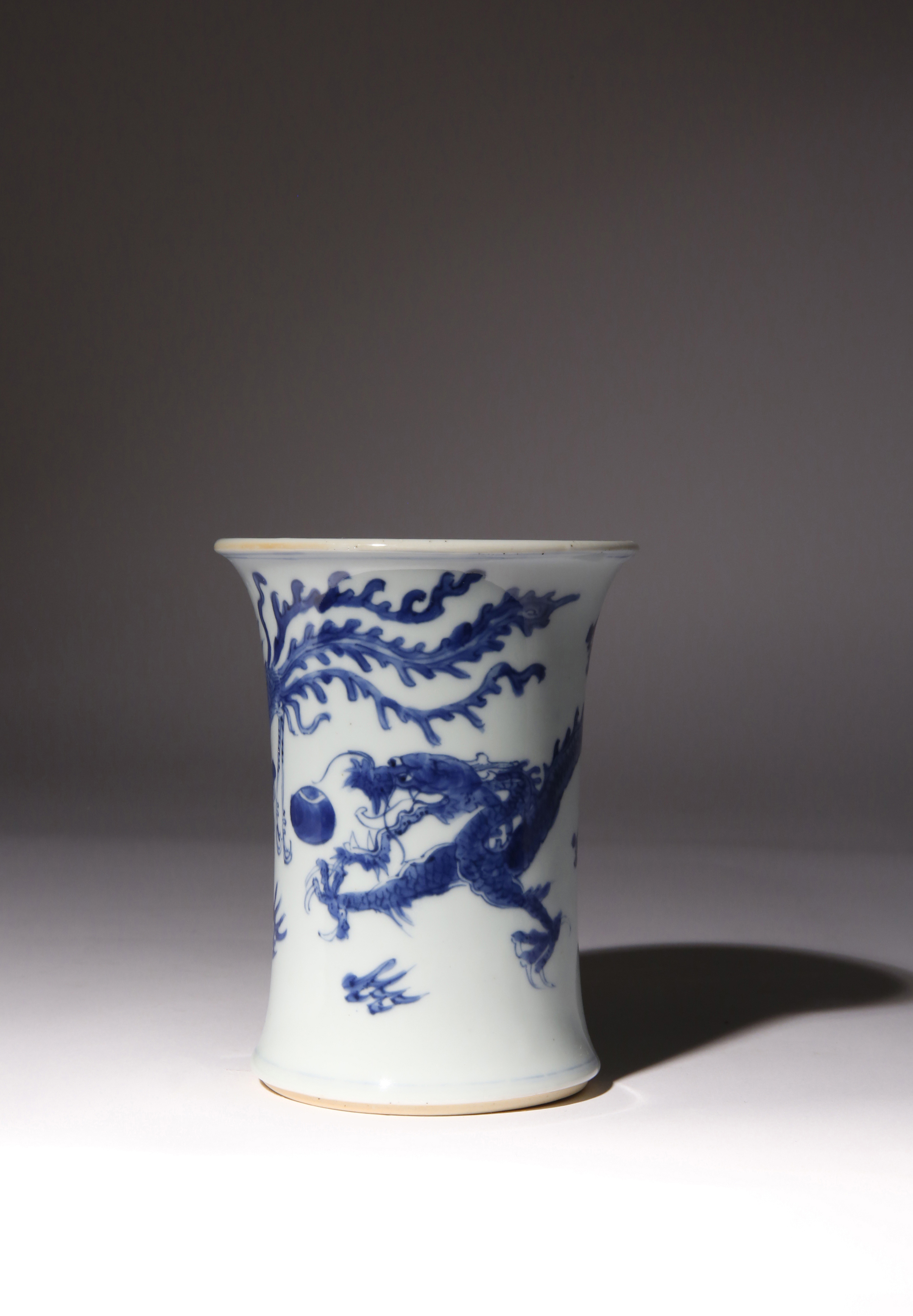 A CHINESE BLUE AND WHITE 'DRAGON AND PHOENIX' BRUSHPOT, BITONG