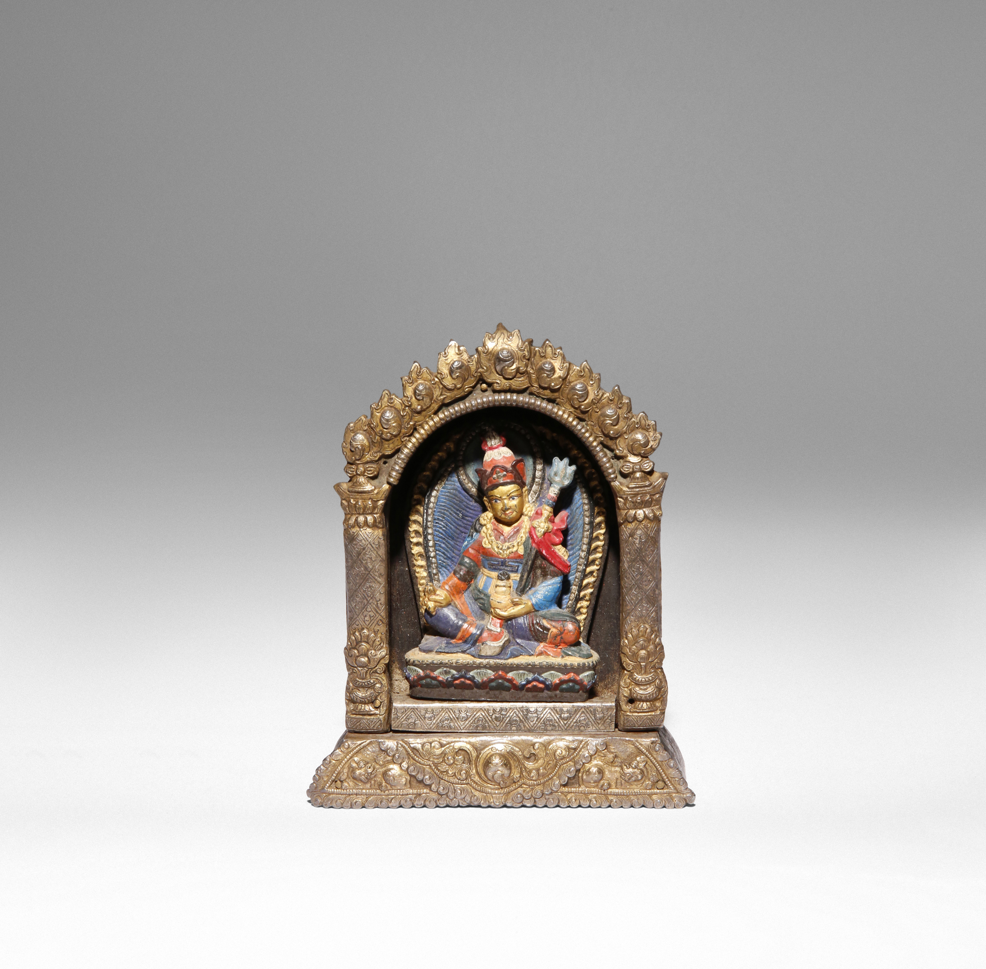A TIBETAN SHRINE WITH A POLYCHROME-PAINTED FIGURE OF PADMASAMBHAVA