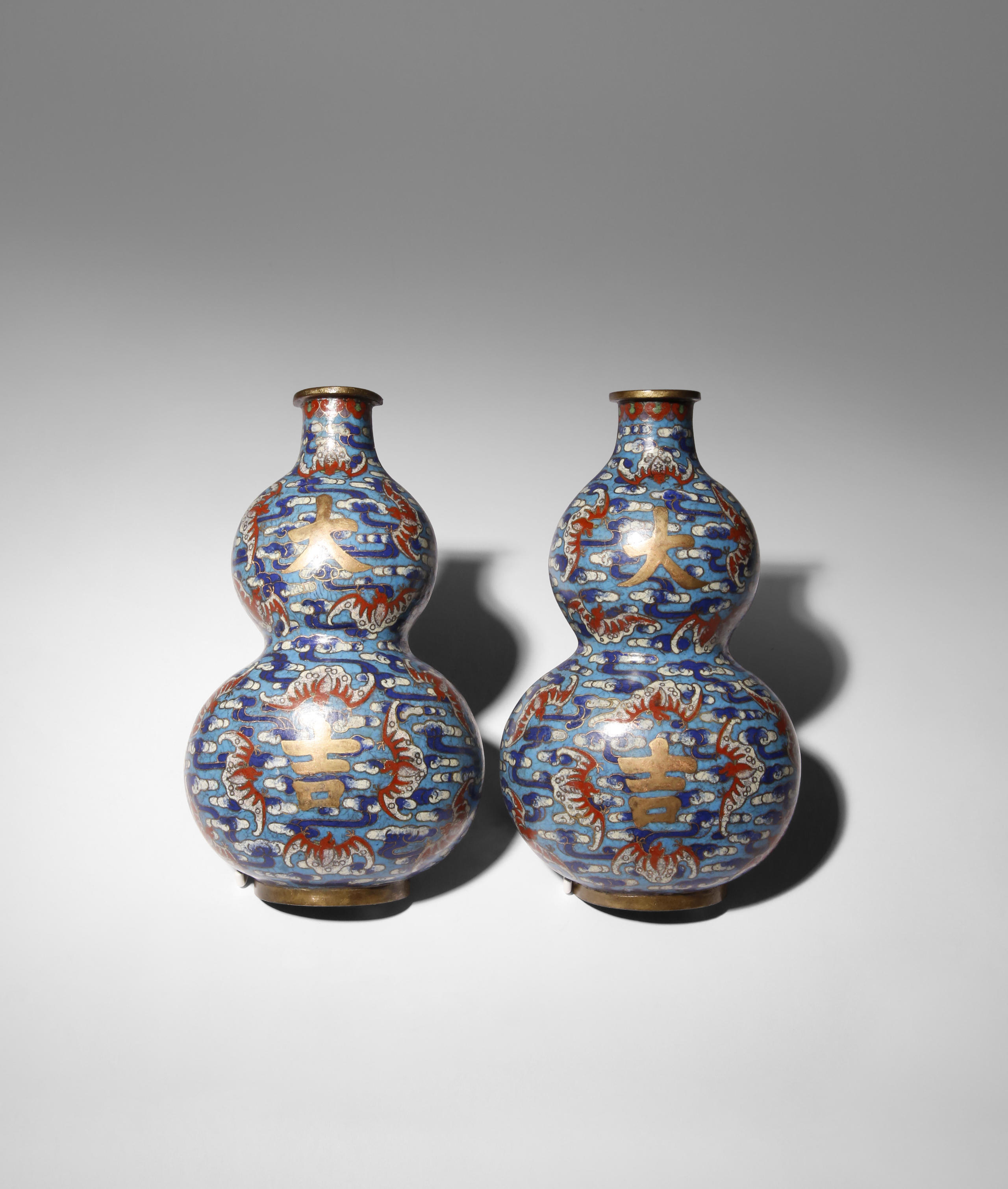 A PAIR OF CHINESE CLOISONNE ENAMEL DOUBLE GOURD WALL VASES