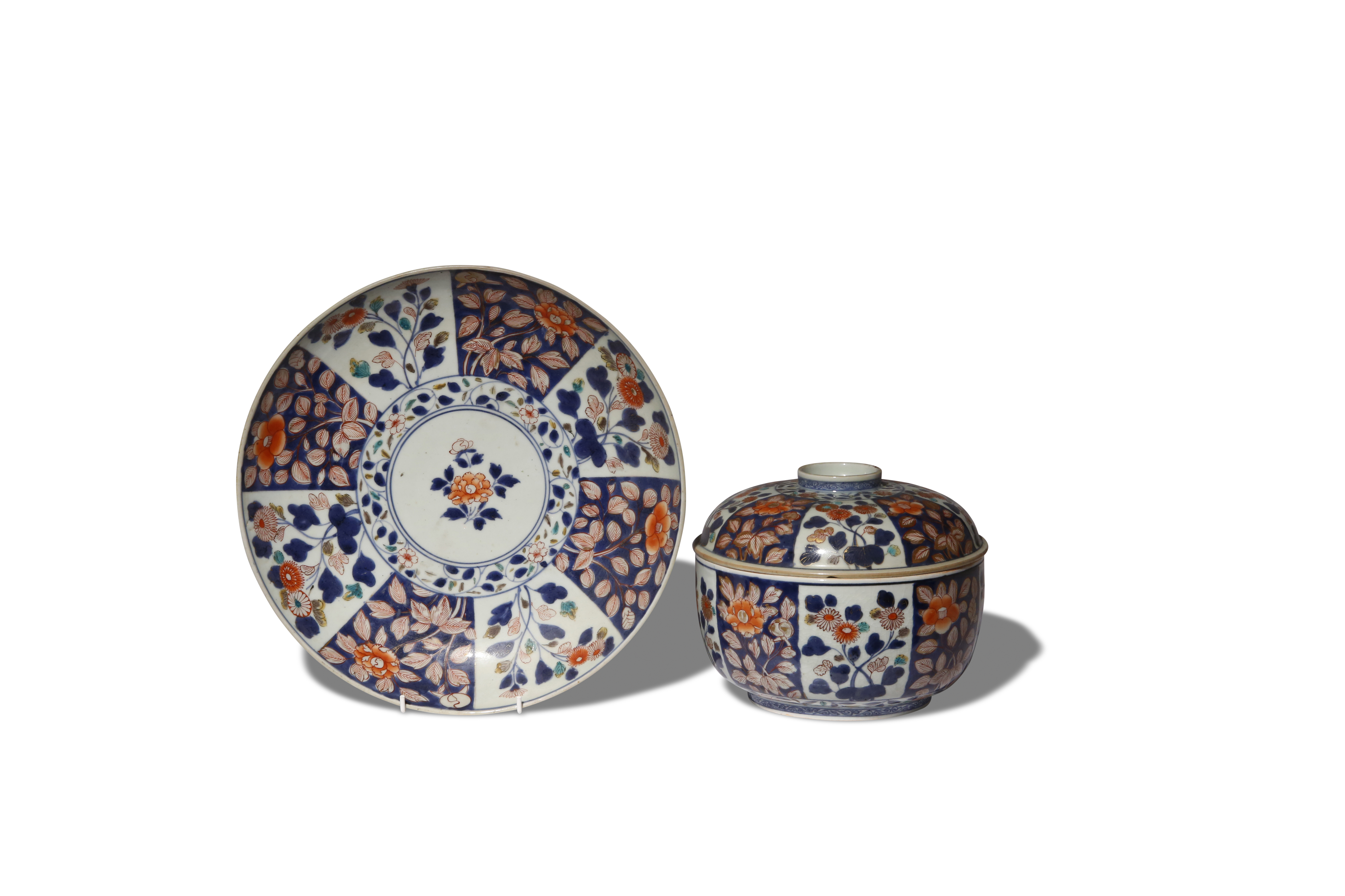 A JAPANESE IMARI TUREEN, COVER AND LARGE EN-SUITE DISH