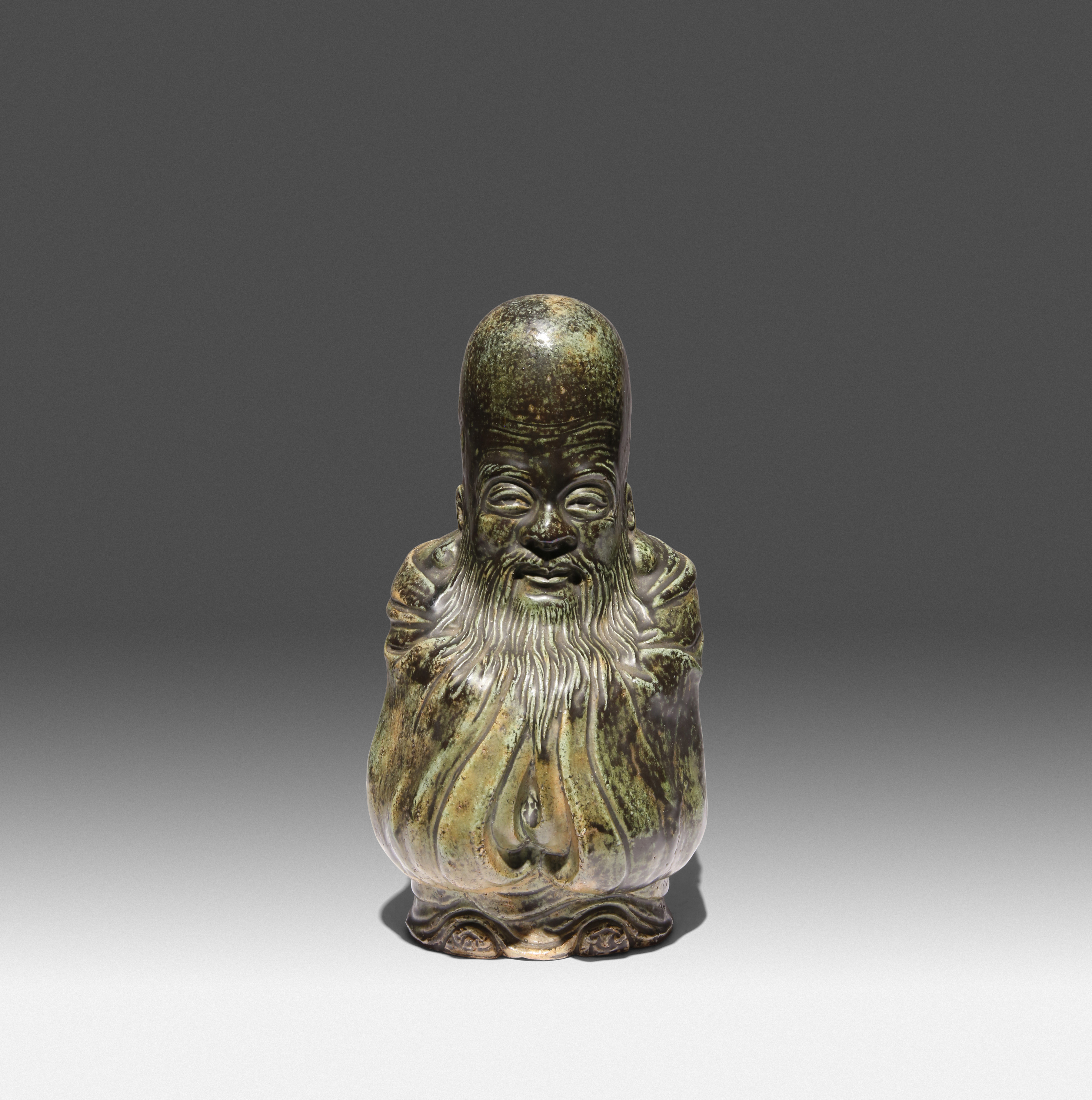 A JAPANESE GREEN-GLAZED FIGURE OF FUKUROKUJU