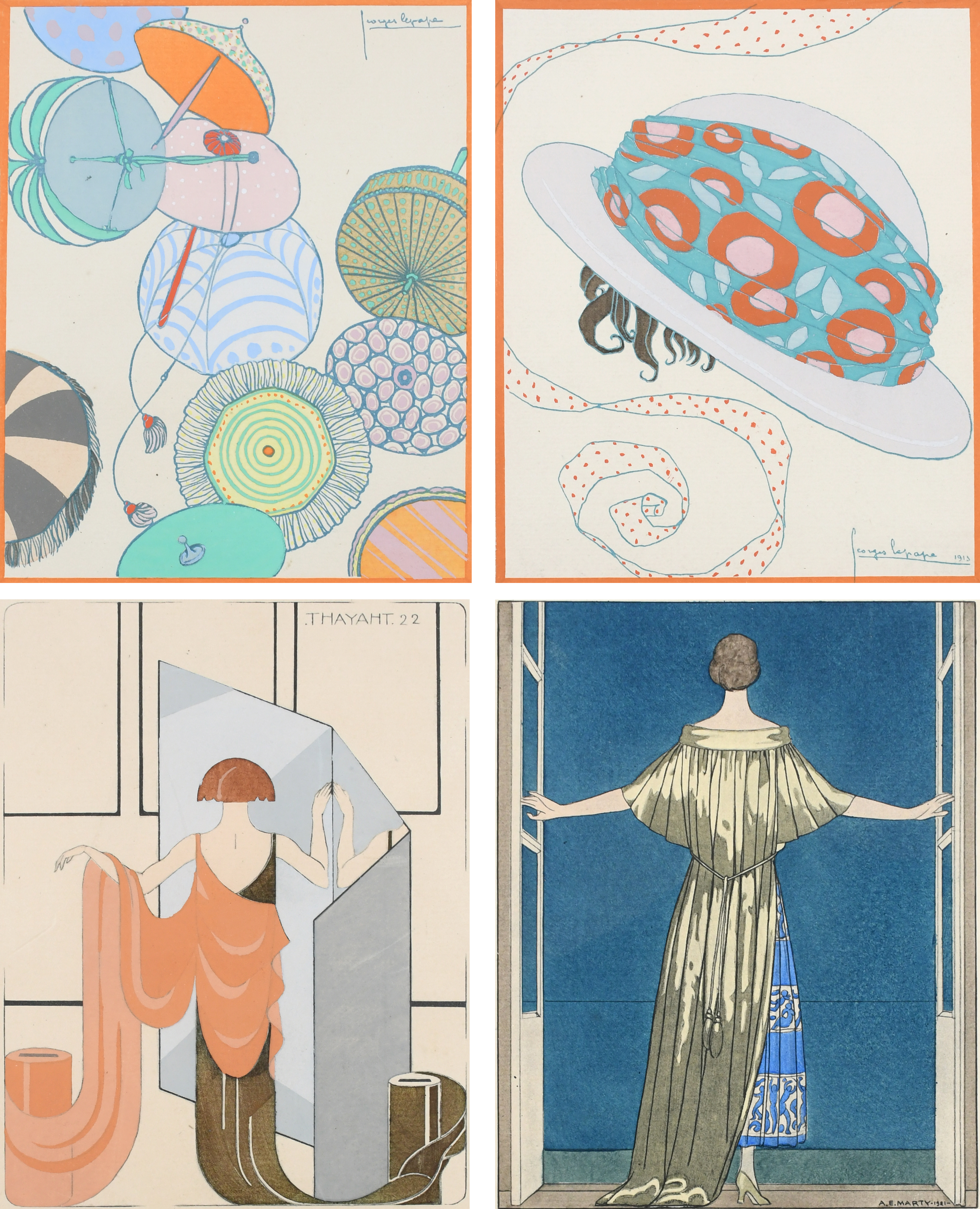 Two, both pochoir print with hand-colouring, 1913