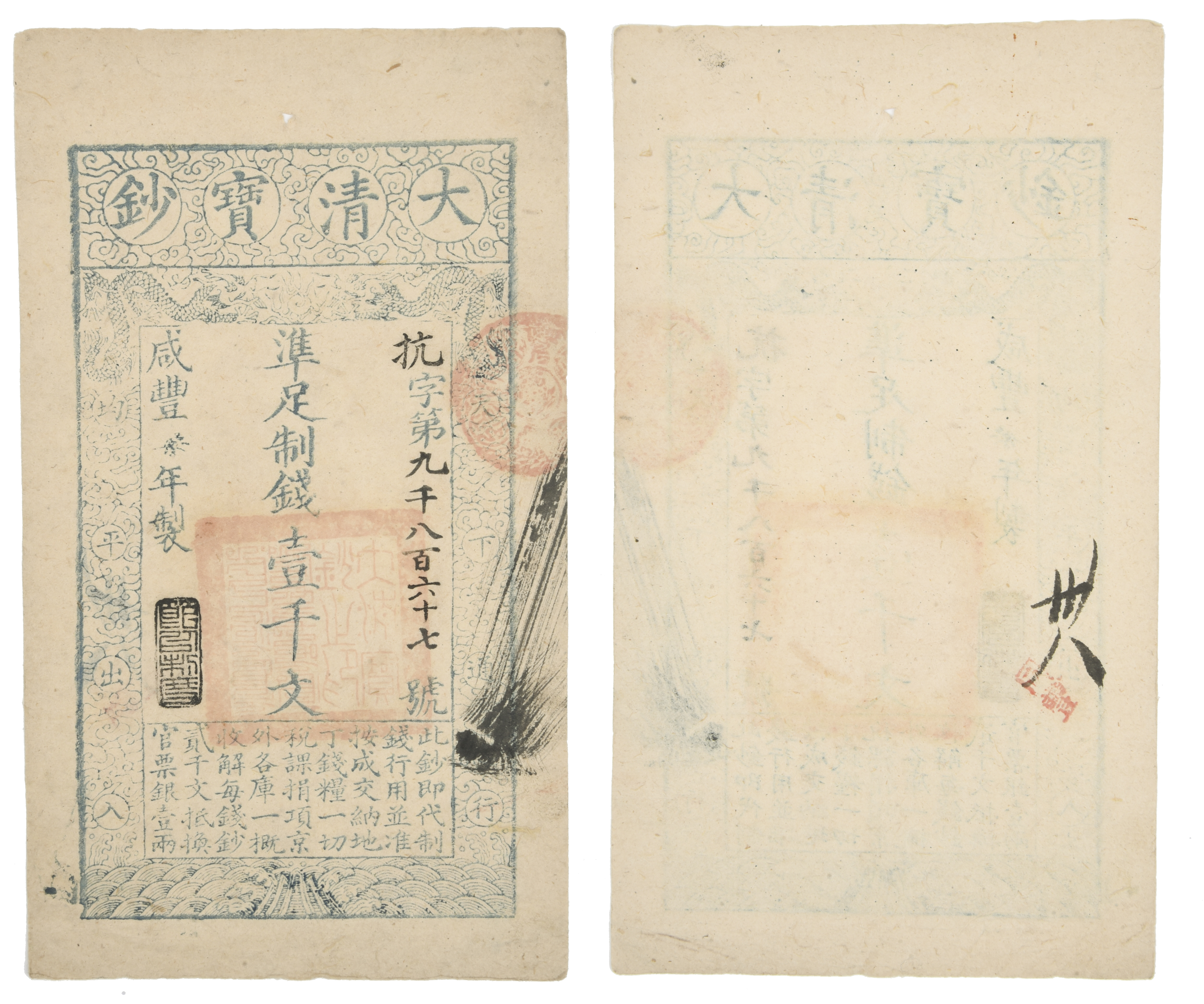 China: Qing Dynasty, one thousand cash, 1853 issue (Pick A2), fine.