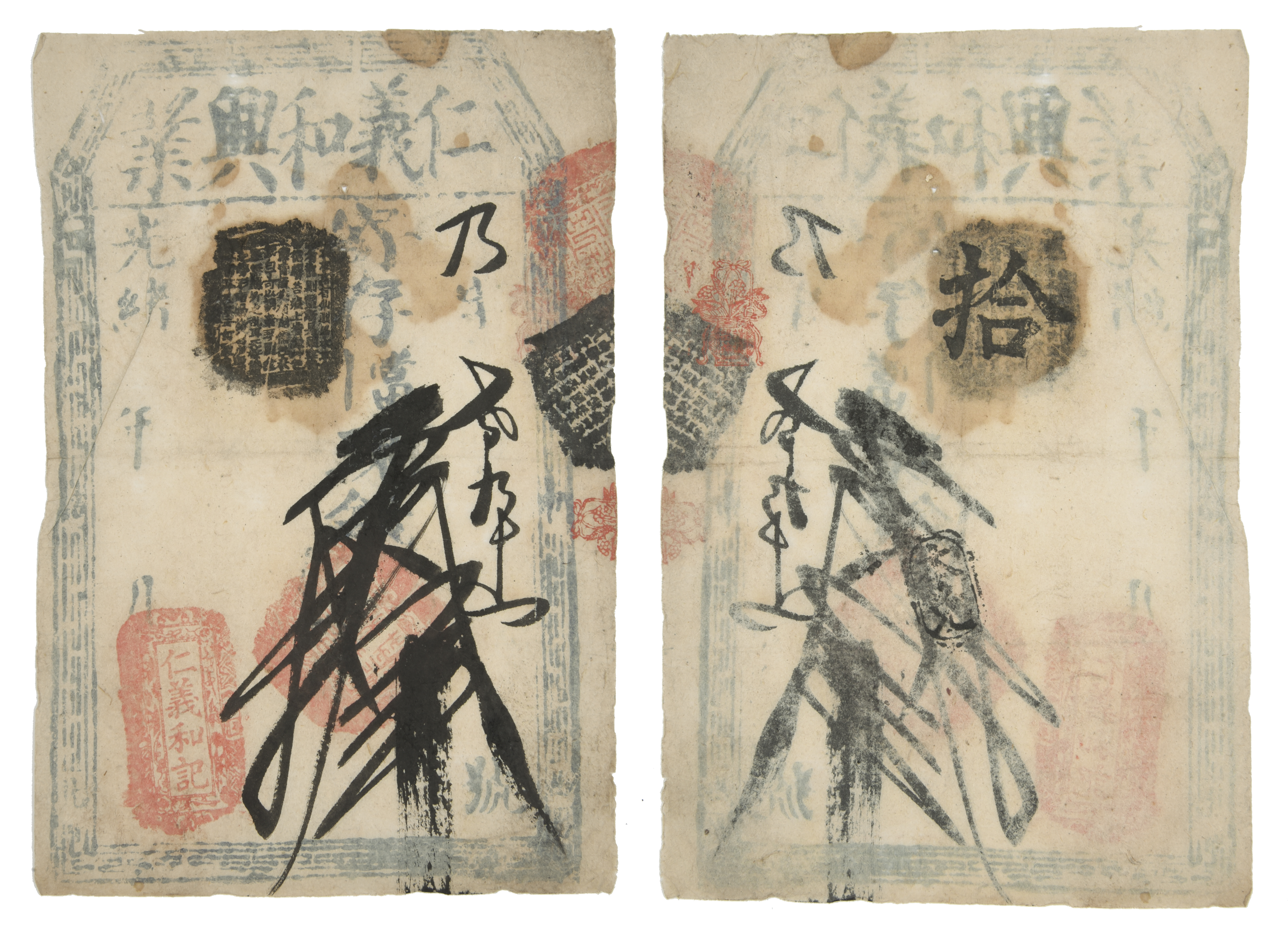 China: a block printed commercial currency note, on thin paper, blue print with red and black stamps, endorsed in black ink, fine or better.