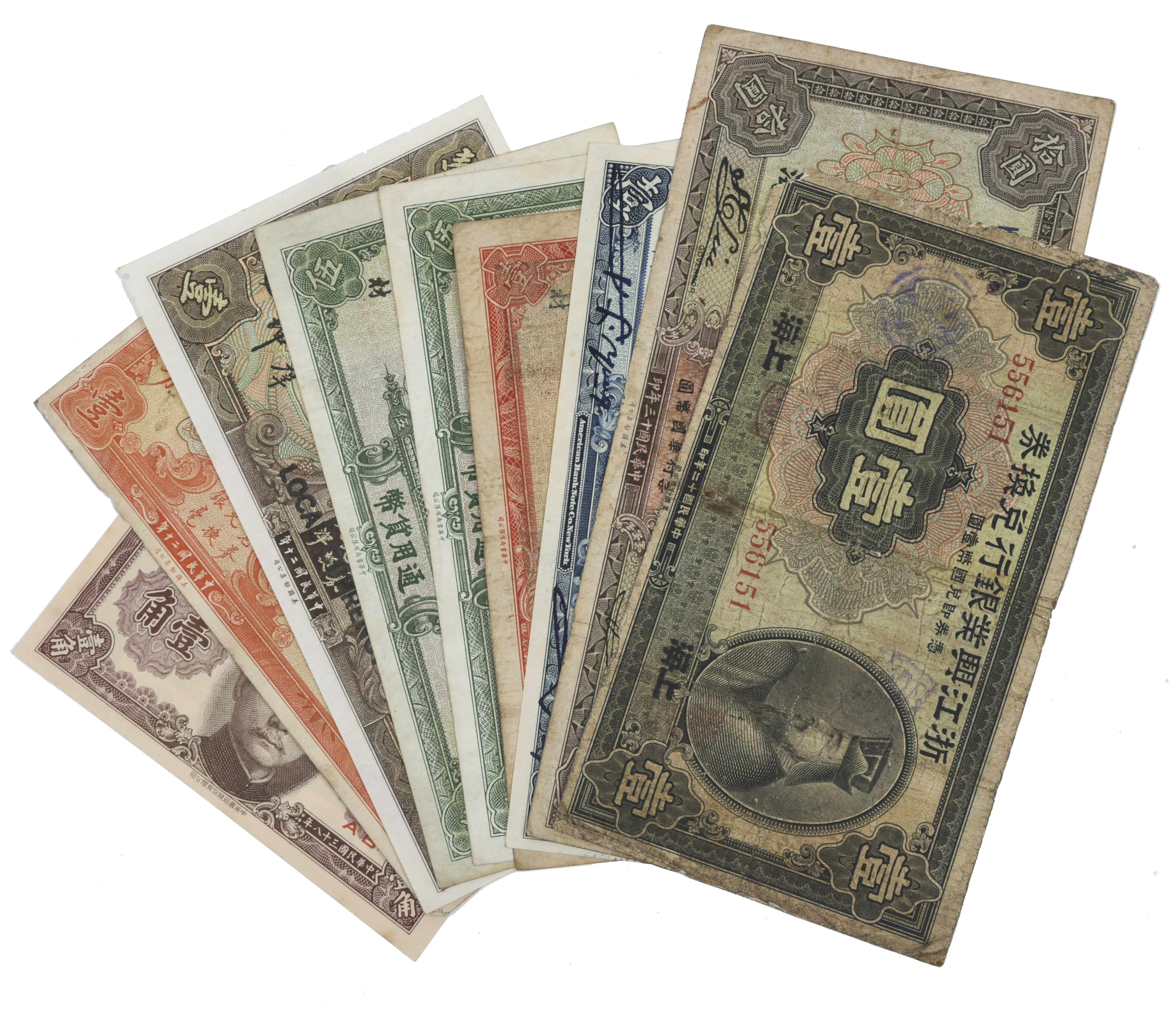 China: Republic: a small collection of paper money, comprising: National Commercial Bank Limited, yuan, Shanghai, 1923 issue (Pick 517a), good or very good; Provincial Bank of the Three Eastern Provinces, ten dollars, 1st January 1924, good or a little better; Provincial Bank of Kwang Tung Province, dollar, Canton, Jan 1st 1918 (SM K55-20b), minimal staining, otherwise about extremely fine; Kwangtung Provincial bank (6): dollar, c. 1936 (SM K56-50), very good or better; five dollars (2), local currency, very fine; dollar, 1931, local currency over printed on national (SM K56-4b), good very fine; dollar, 1931, local (SM K56-1), fine; ten cents, 1949 (SM K57-3), light staining, otherwise about extremely fine. [9]