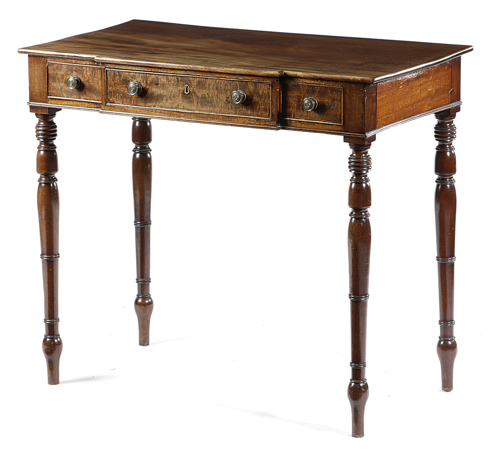 A REGENCY MAHOGANY BREAKFRONT SIDE TABLE