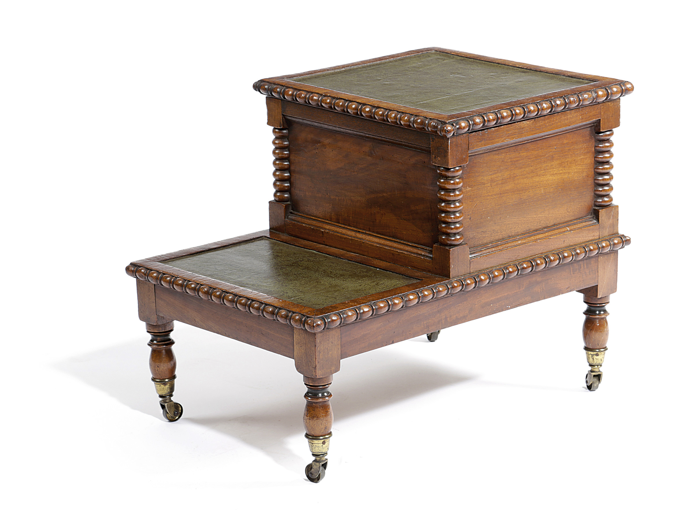 with baton reel and bobbin mouldings, with inset leather treads and a hinged top