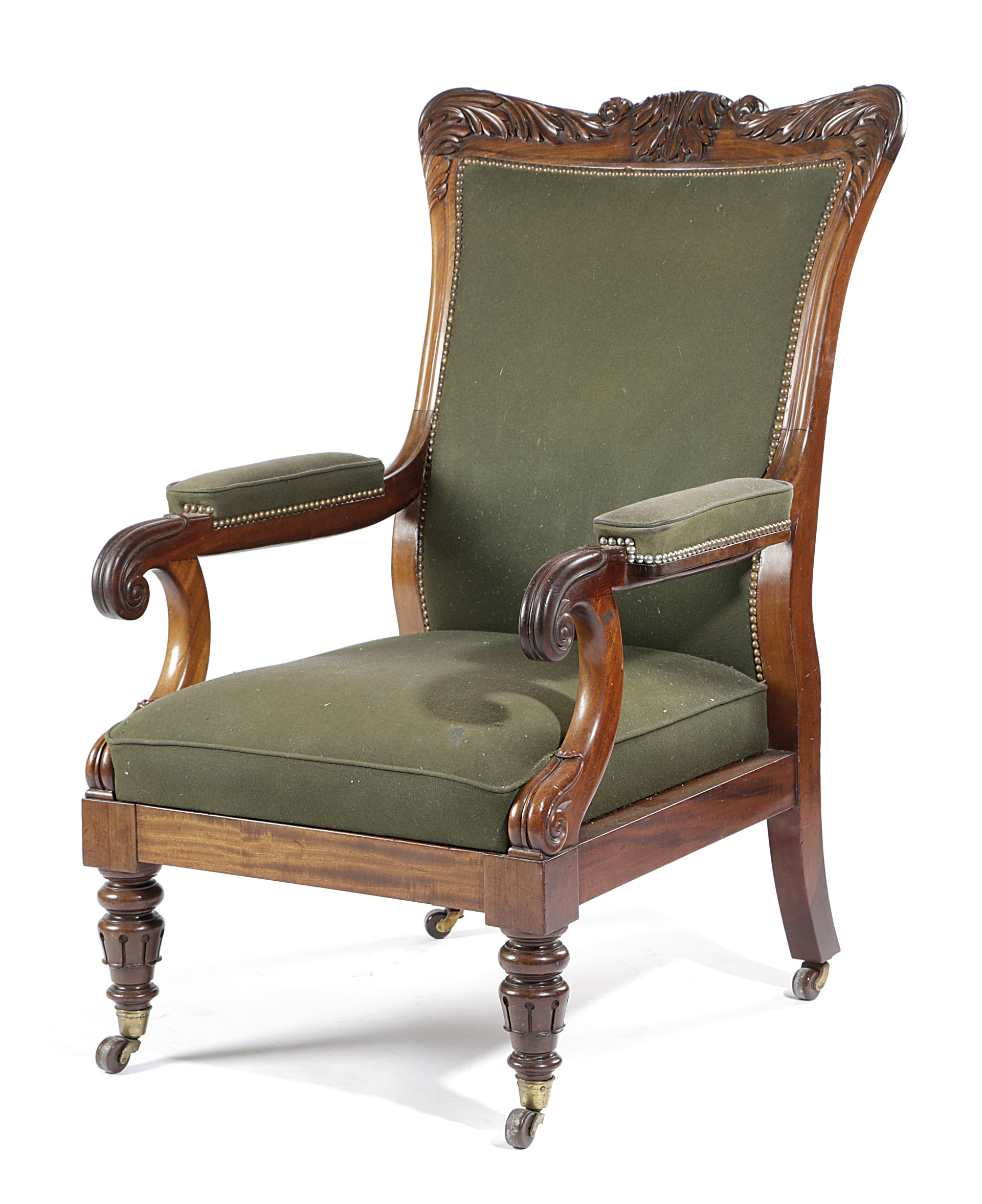 A WILLIAM IV MAHOGANY LIBRARY ARMCHAIR
