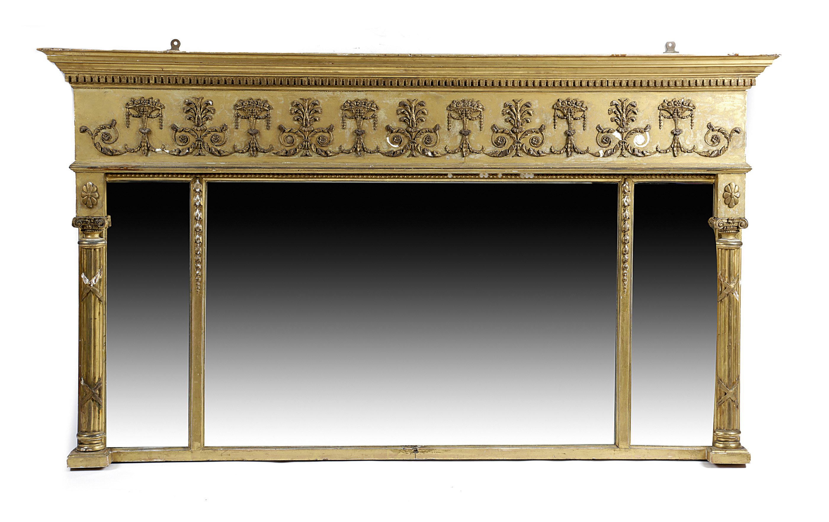 with three bevelled plates flanked by cluster columns, the frieze decorated with palmettes interspersed with tazze of fruit
