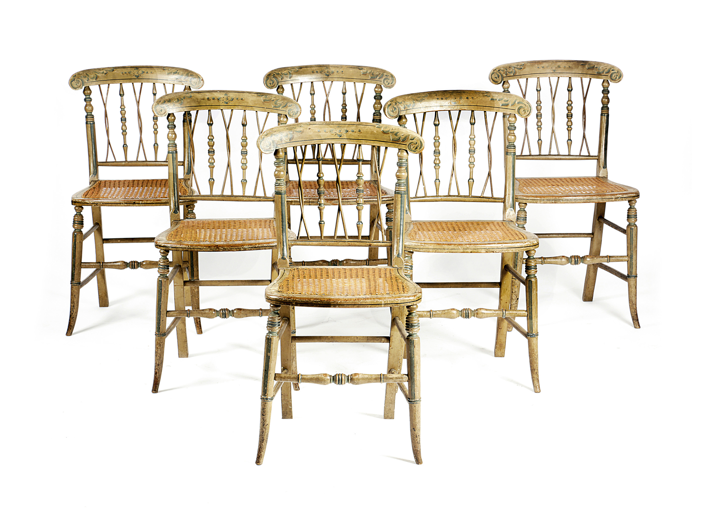 A SET OF SIX EARLY VICTORIAN PAINTED SIDE CHAIRS