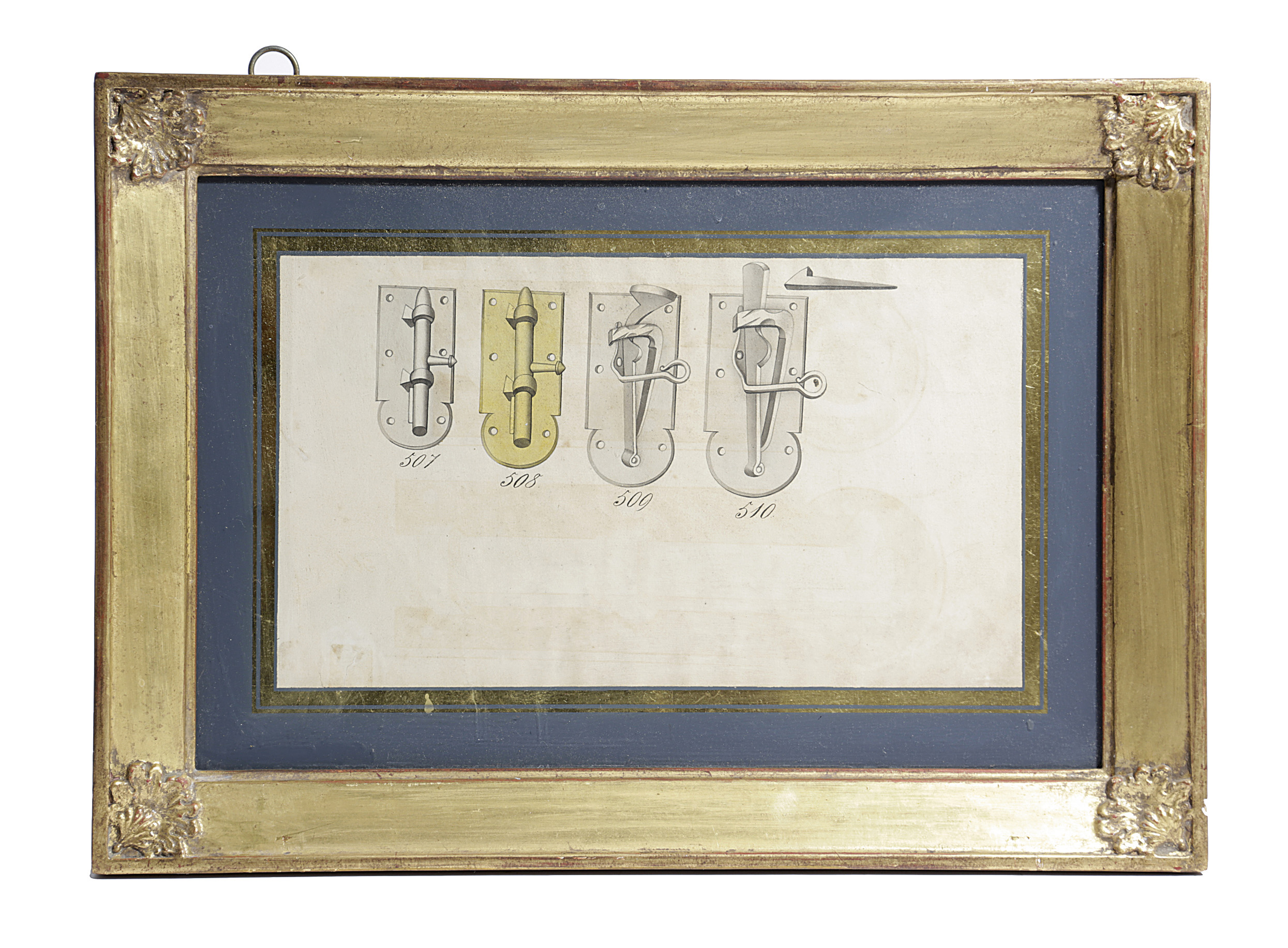 A SET OF FOUR GERMAN WATERCOLOURS OF LOCKS AND BOLTS
