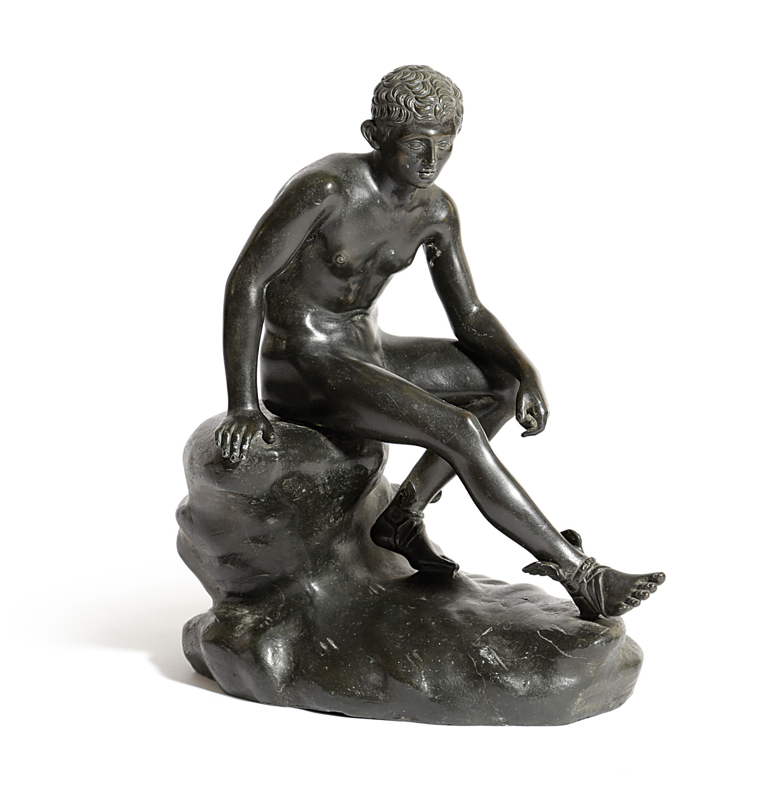 AN ITALIAN BRONZE GRAND TOUR FIGURE OF THE SEATED MERCURY