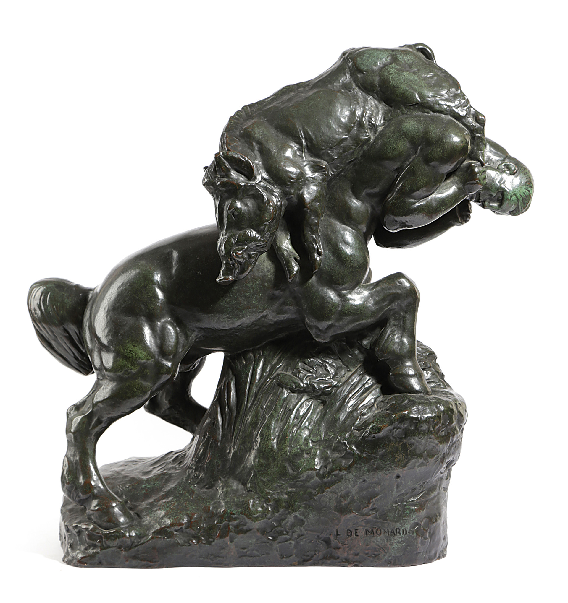 A FRENCH BRONZE GROUP OF A CENTAUR AND A WILD BOAR