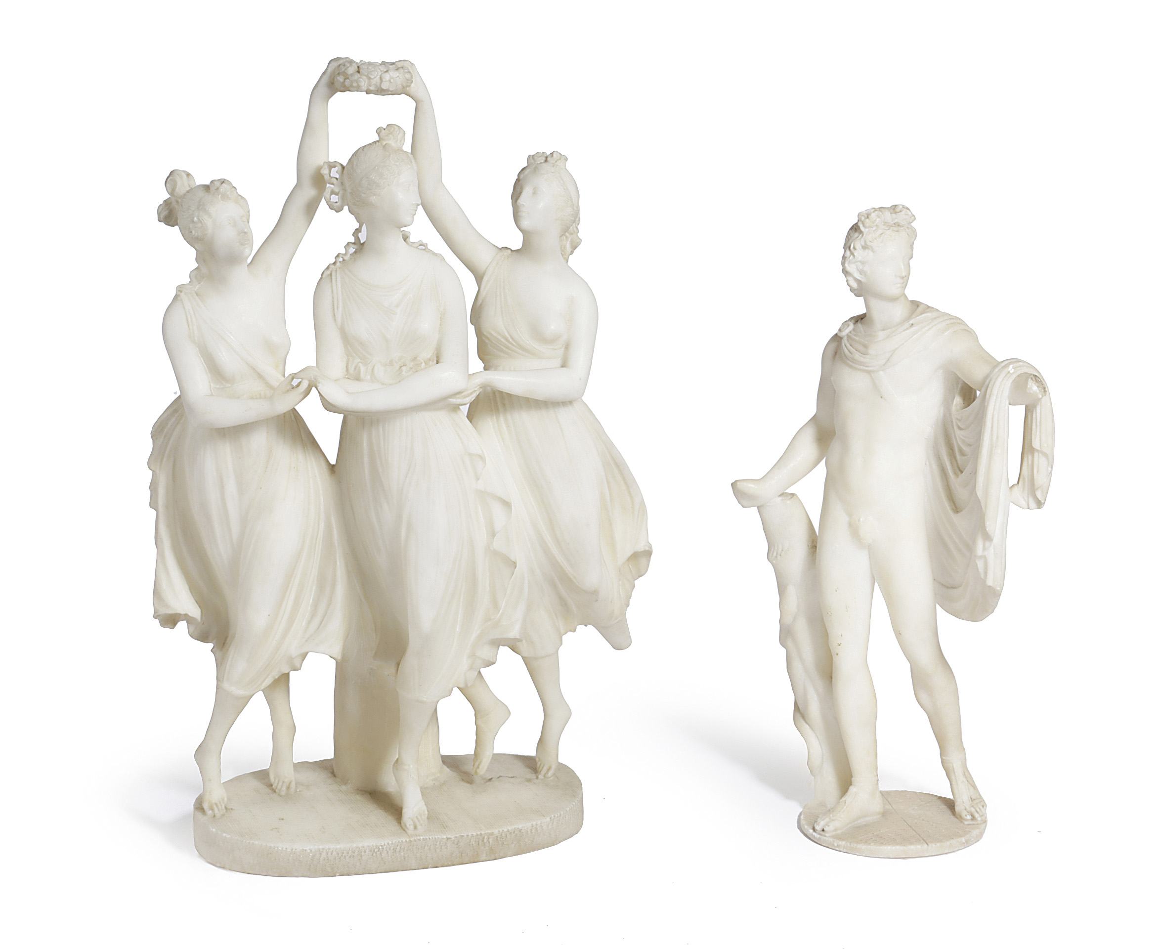AN ITALIAN ALABASTER GRAND TOUR GROUP OF THE THREE GRACES