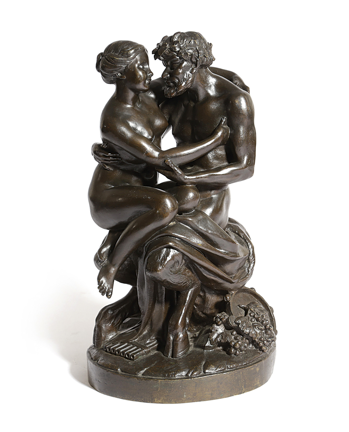 A FRENCH BRONZE GROUP OF A SATYR AND NYMPH