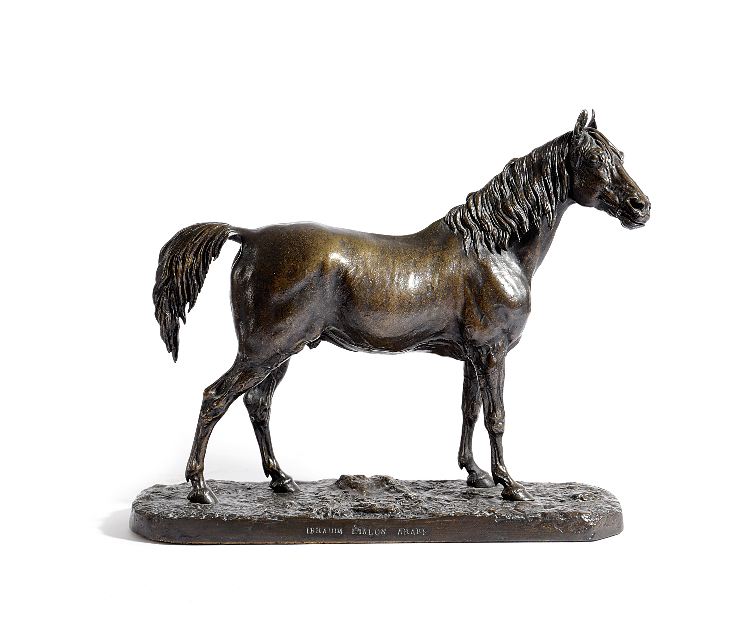 A FRENCH EQUESTRIAN BRONZE MODEL OF 'IBRAHIM' - AN ARAB STALLION