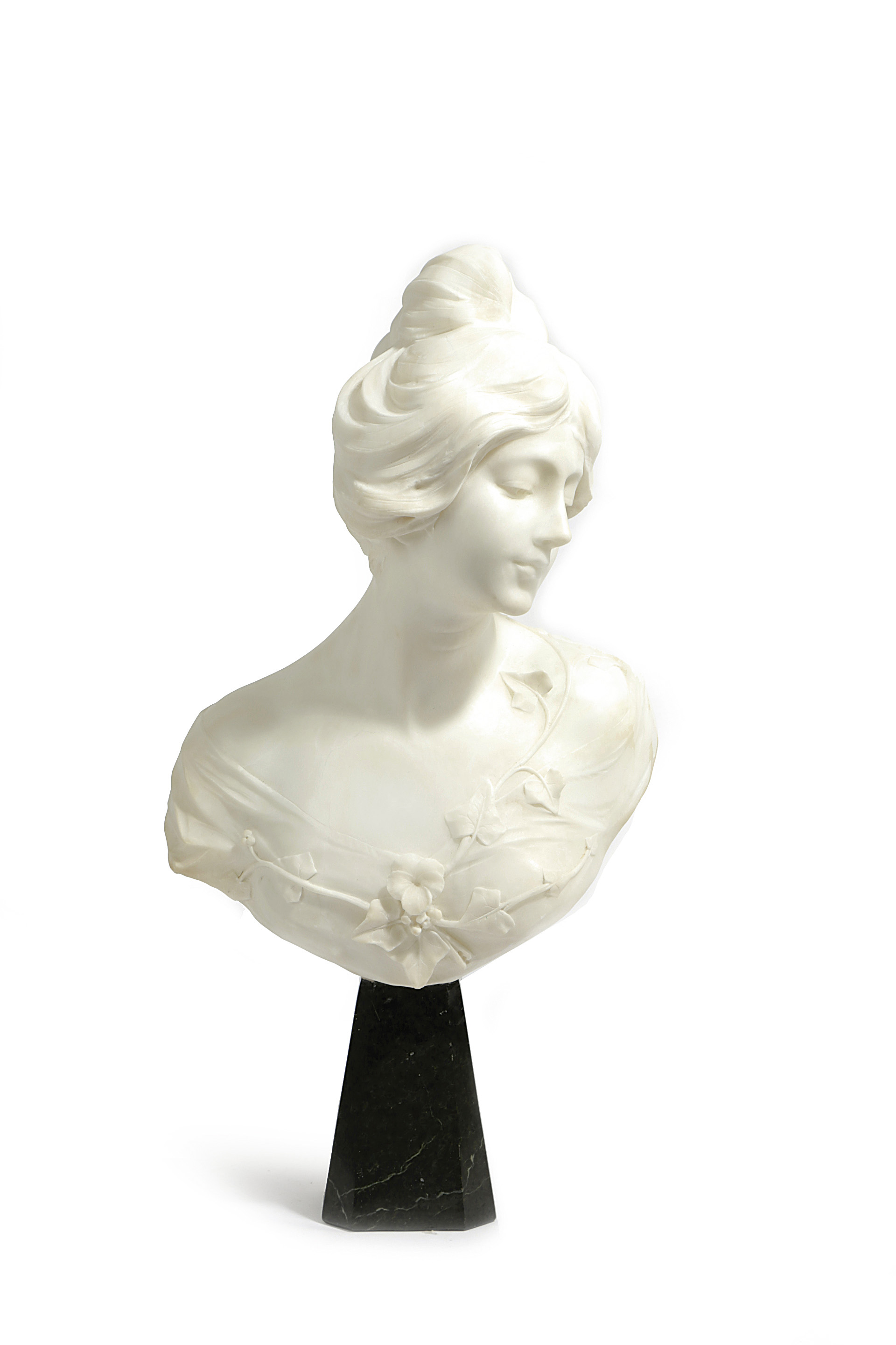 A FRENCH ALABASTER BUST OF A YOUNG LADY