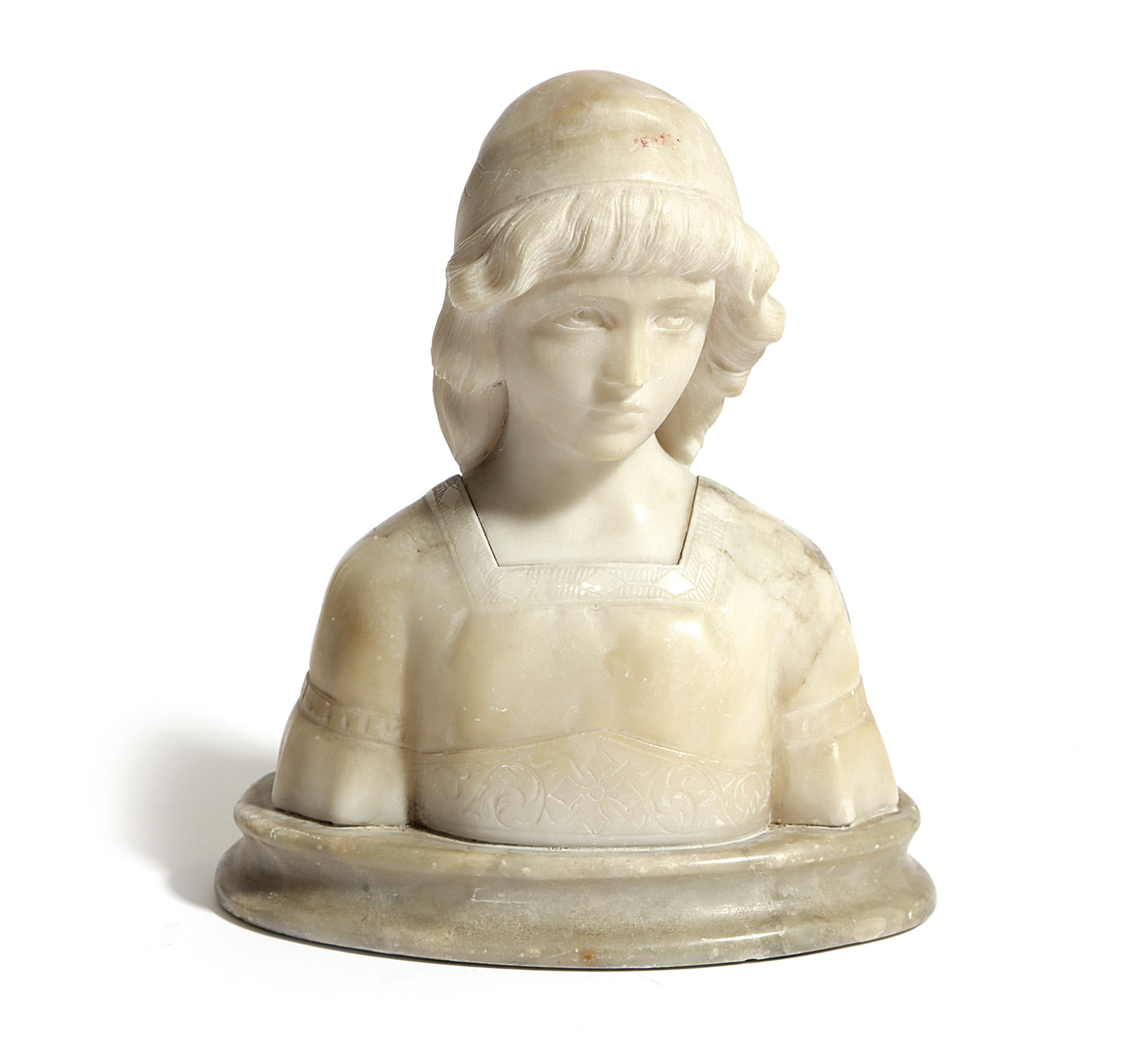 AN ITALIAN ALABASTER BUST OF A GIRL