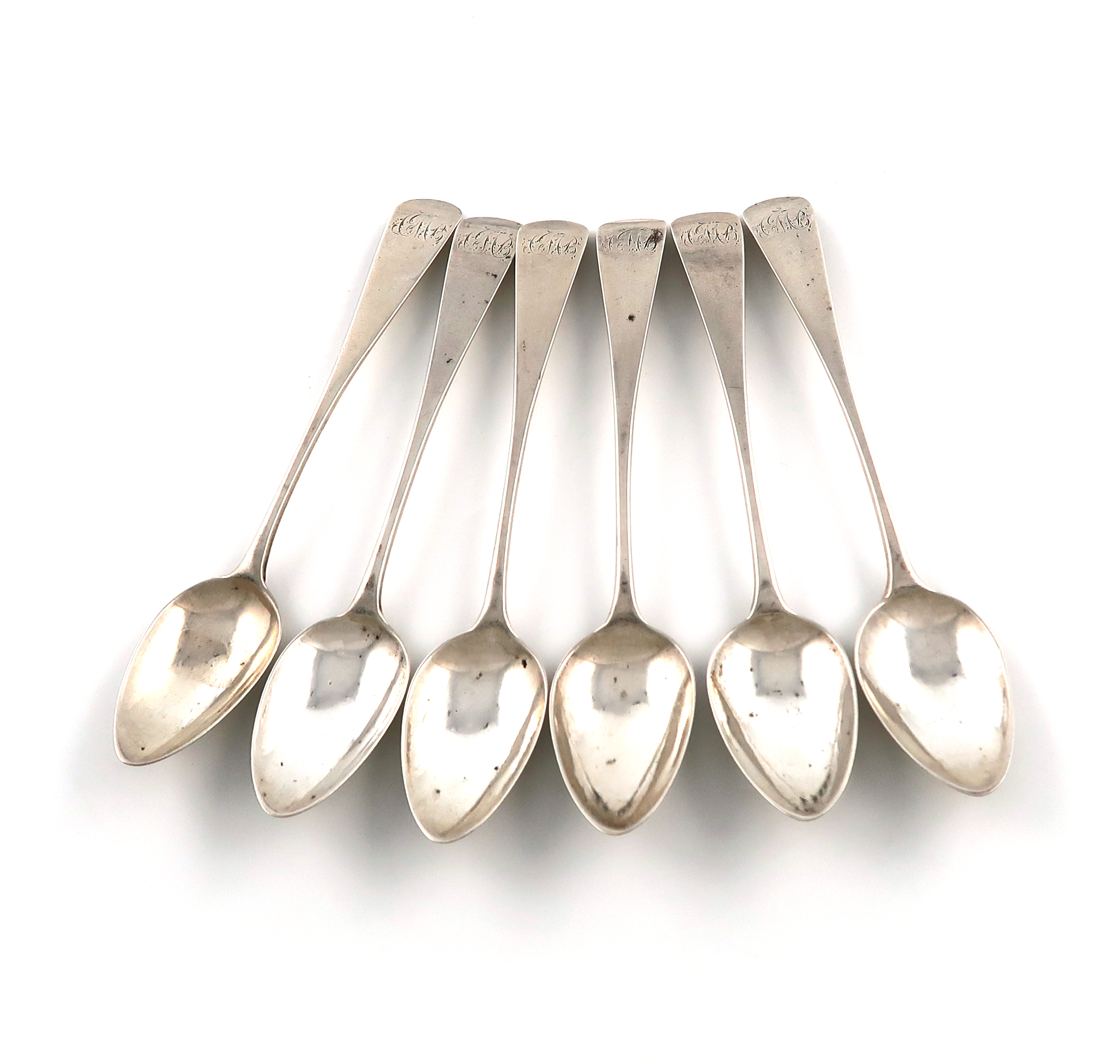 A set of six George III Scottish provincial silver Old English pattern teaspoons