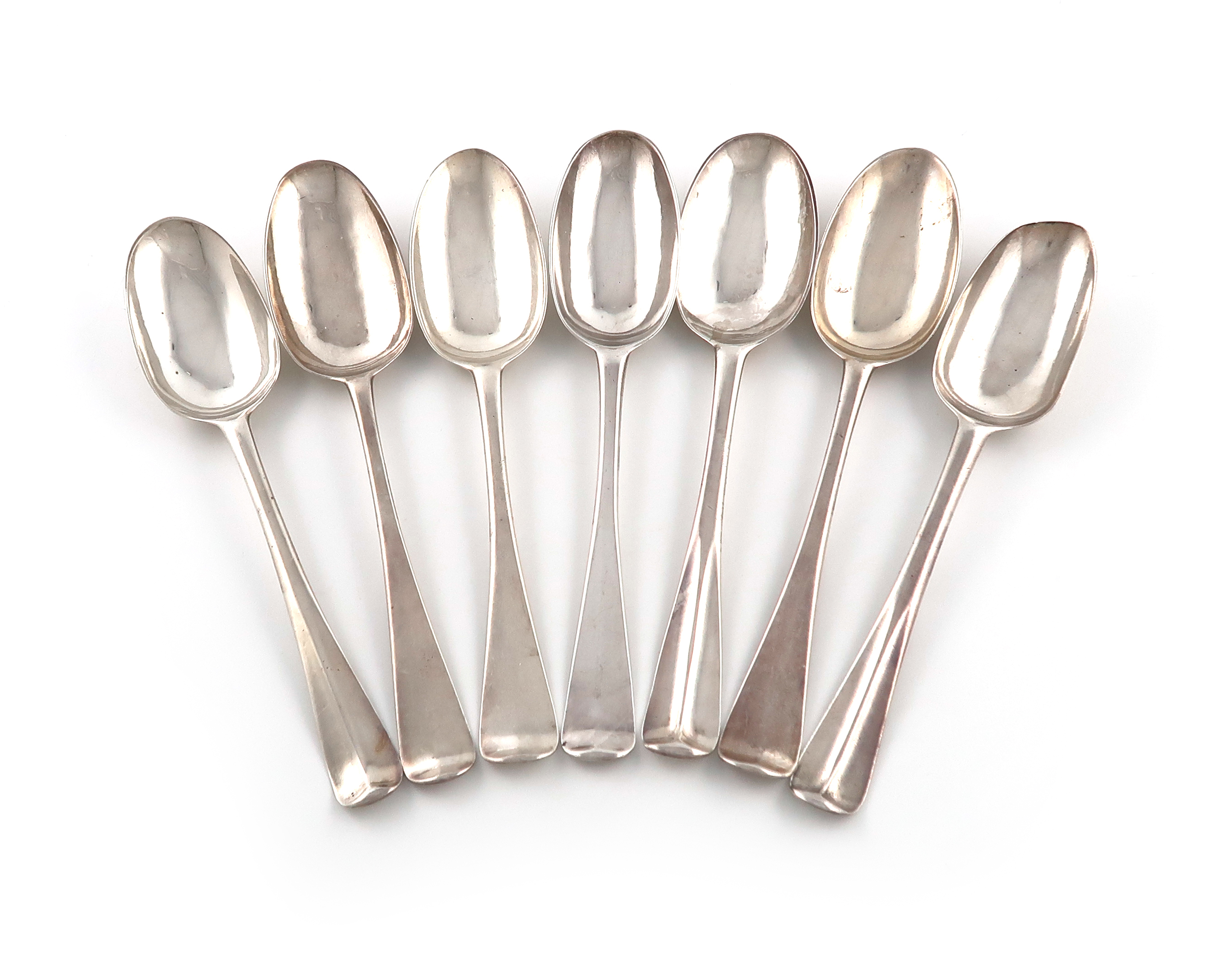 A collection of seven antique Irish silver Hanoverian pattern tablespoon