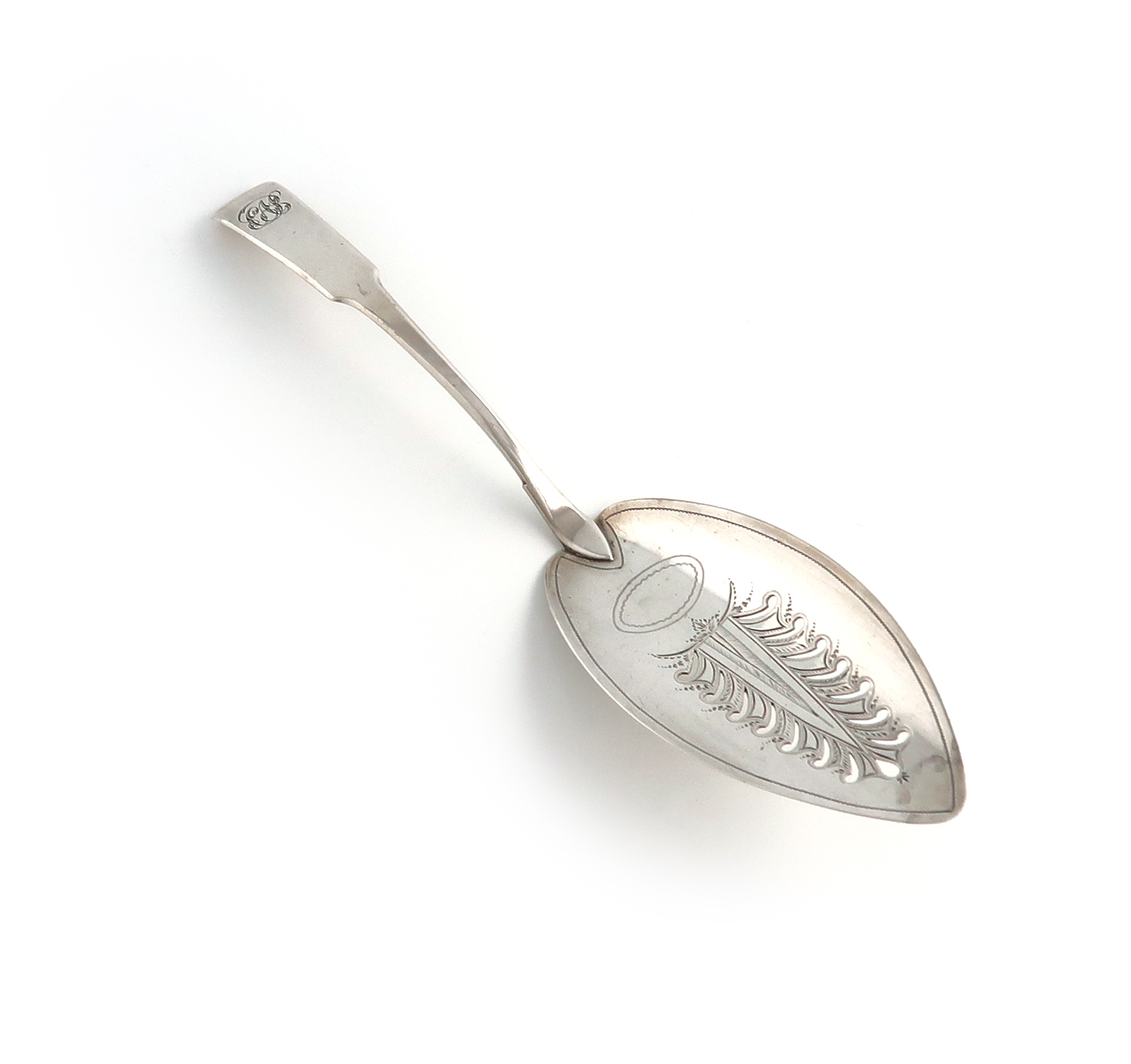 the blade with pierced and engraved decoration, the terminal with initials, length 31cm, approx. weight 4.2oz.