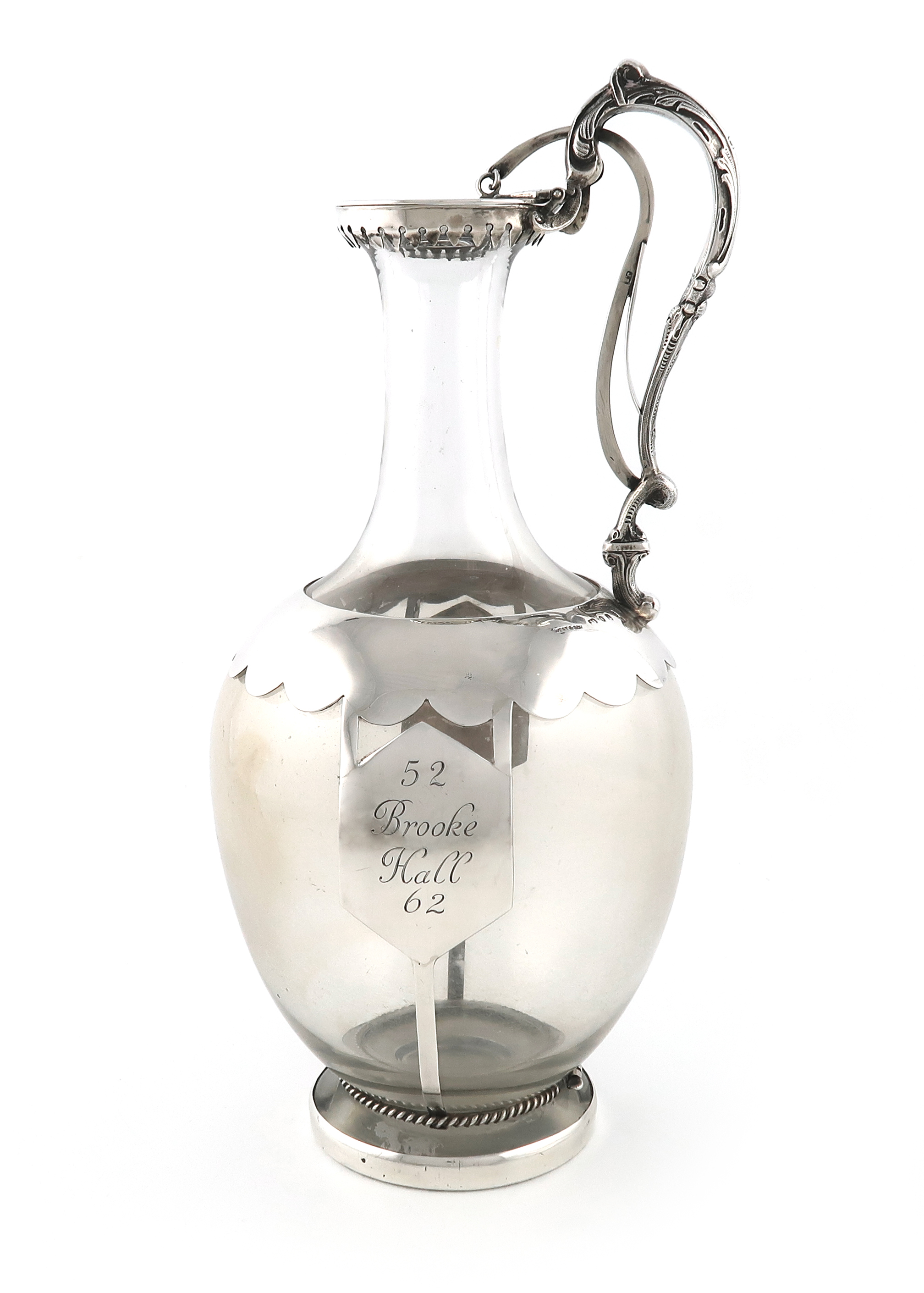 A large Victorian Irish silver-mounted glass claret jug / ewer.
