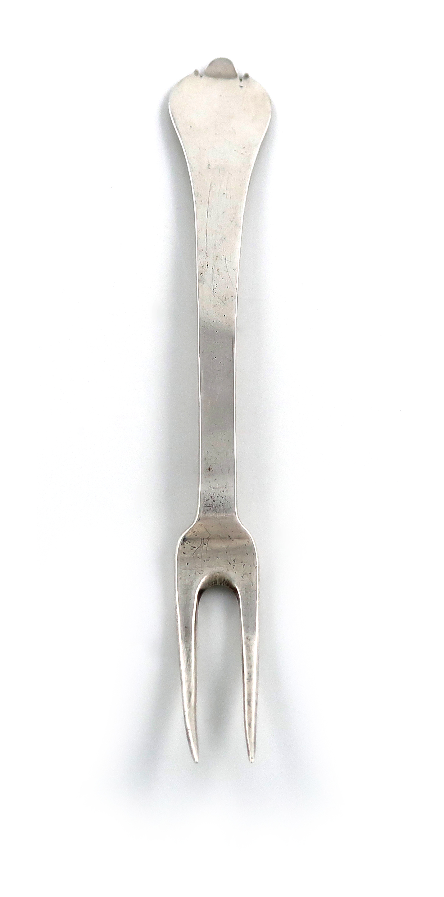 two-pronged tines, the reverse or the terminal with scratch initials 'H' over 'I*M', length 18.5cm, approx. weight 1.4oz.