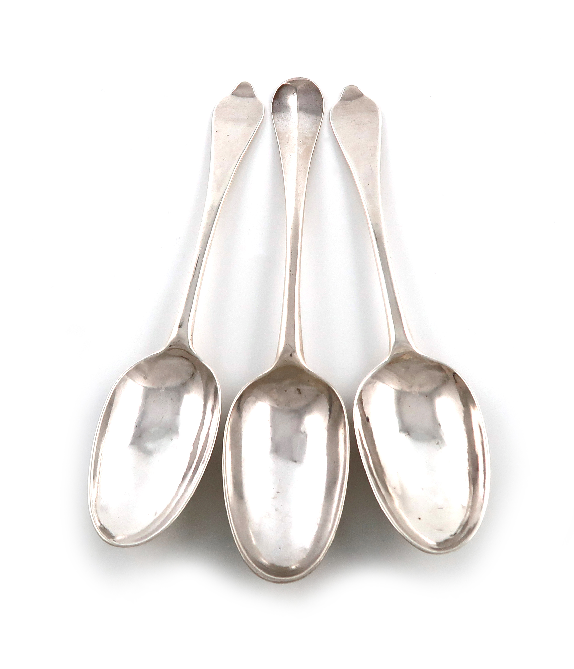 the reverse of the oval bowls with plain rat-tails, the reverse of the terminals with a cipher, length 20cm, plus a George II Hanoverian pattern tablespoon, London 1737, approx. total weight 6.5oz. (3)