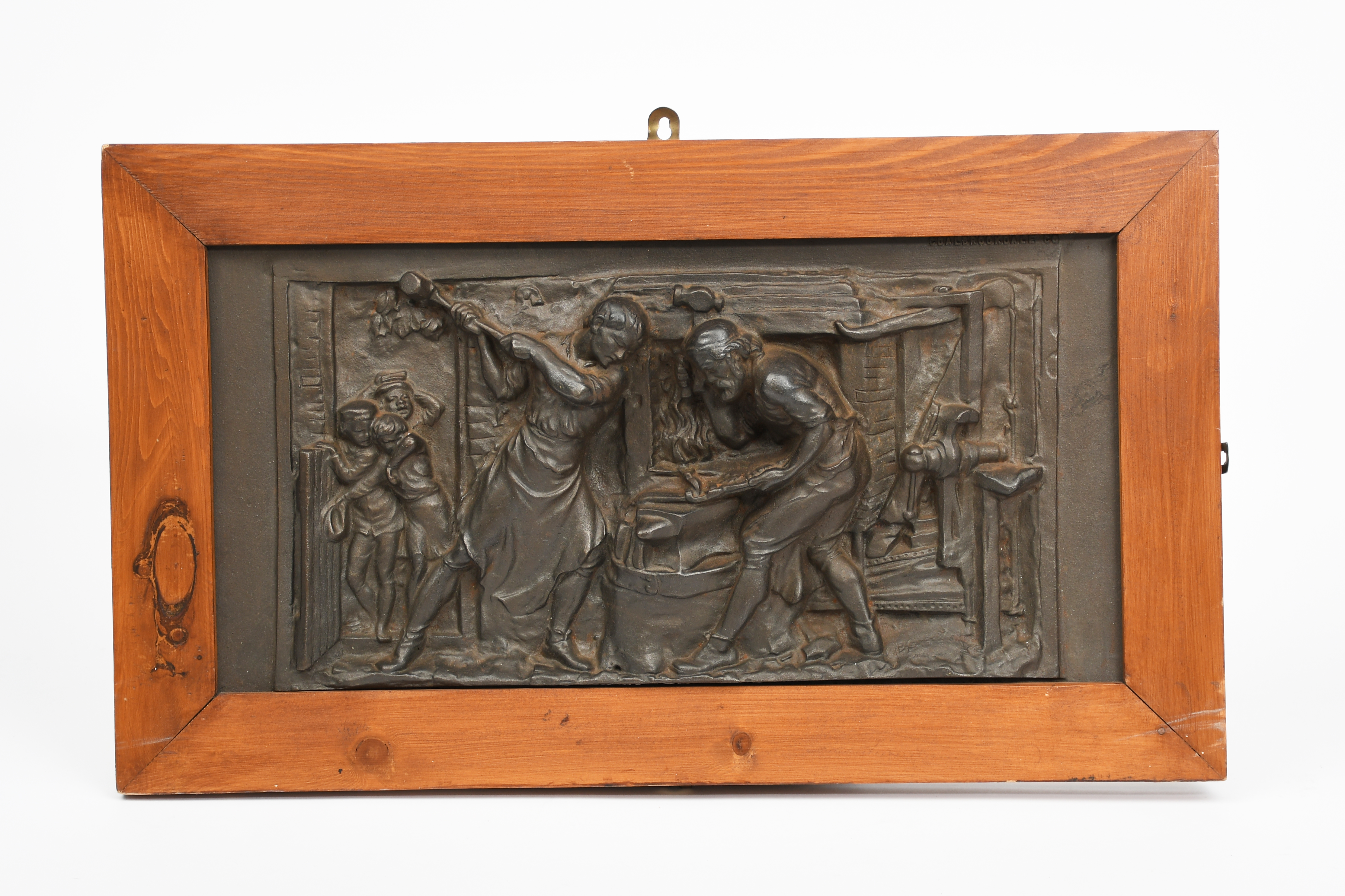 patinated cast iron panel cast by Coalbrookdale Co, framed