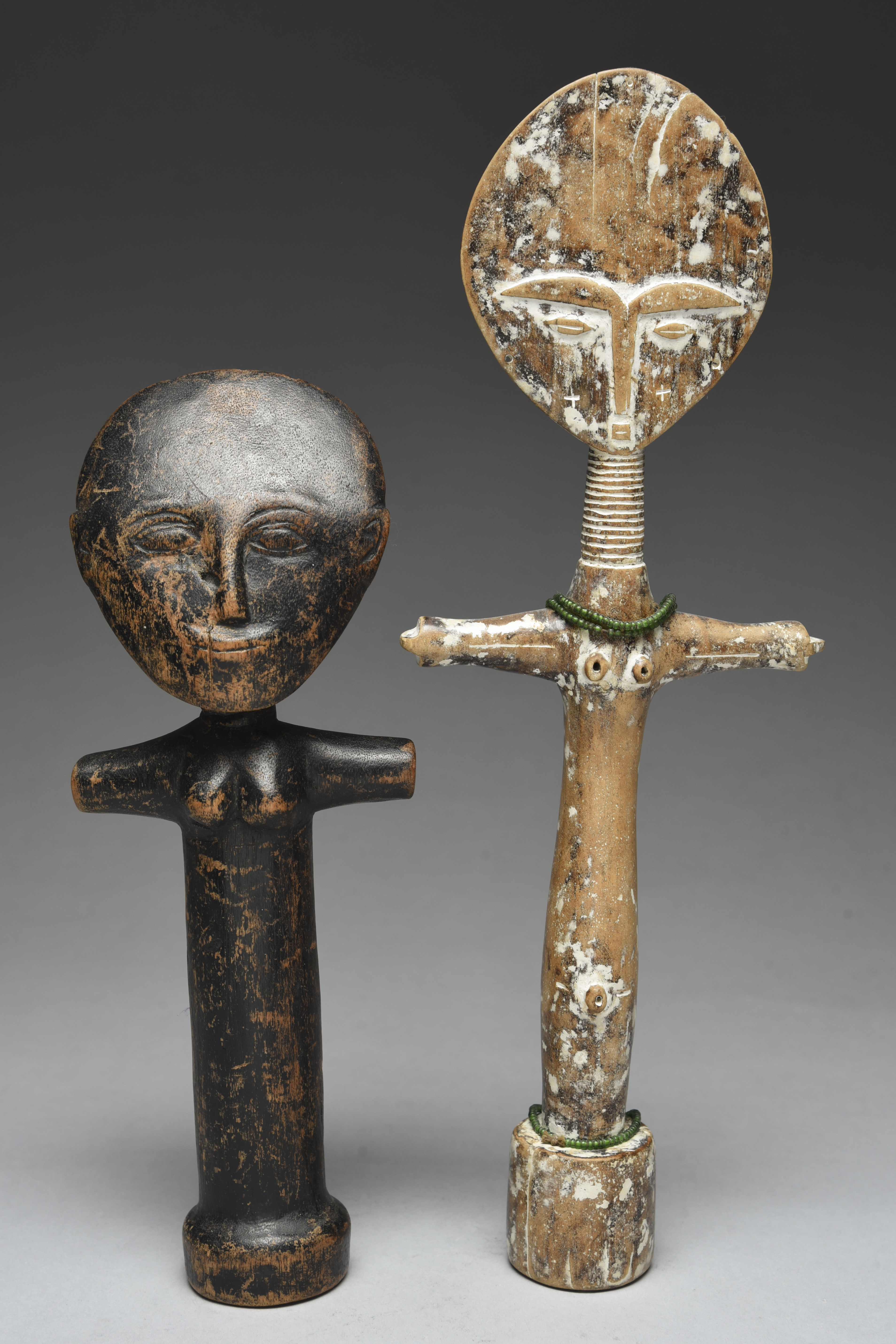 and an Ashanti akuaba doll, 27.5cm high. (2)