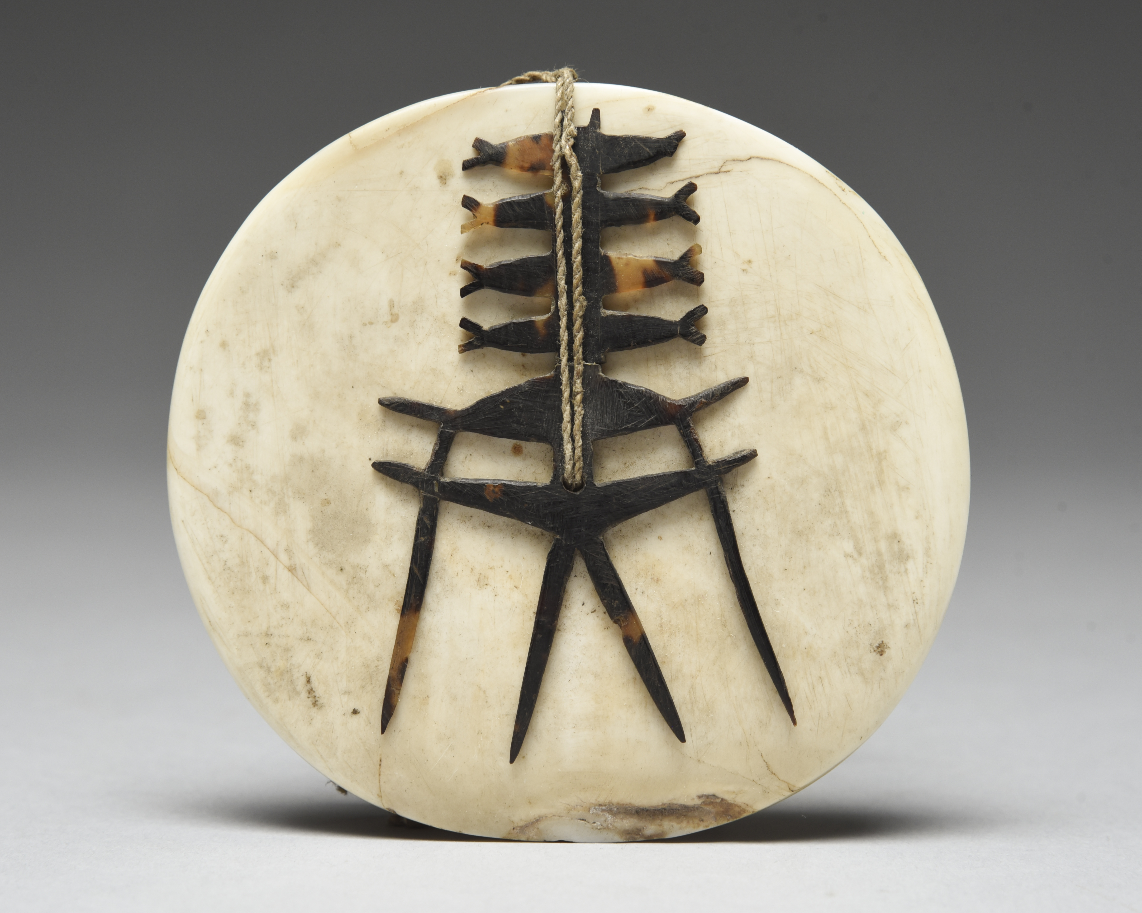 tridacna shell and turtleshell with fibre binding, with Melanesian Mission label,