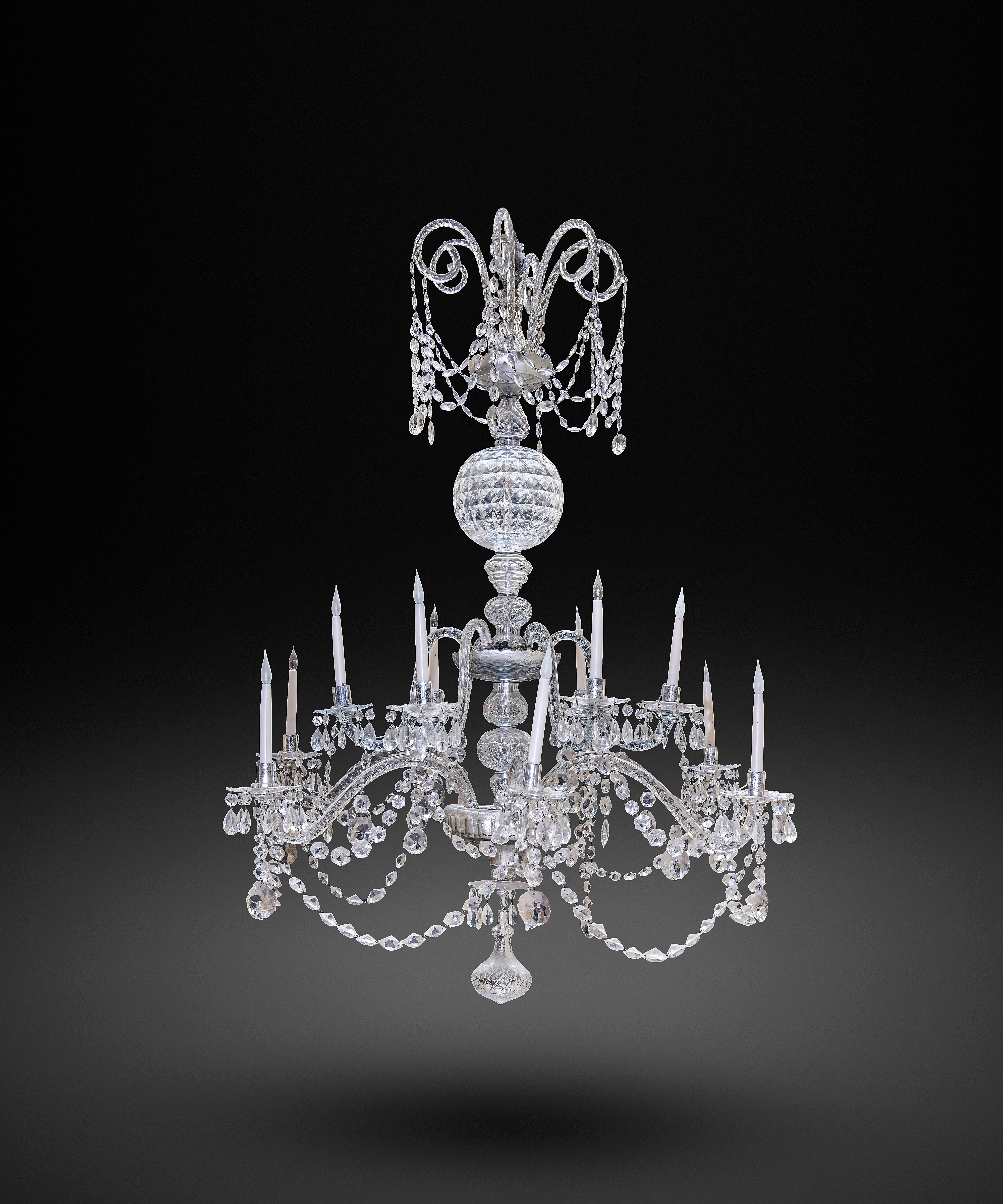 A LARGE CUT-GLASS TWELVE-LIGHT CHANDELIER