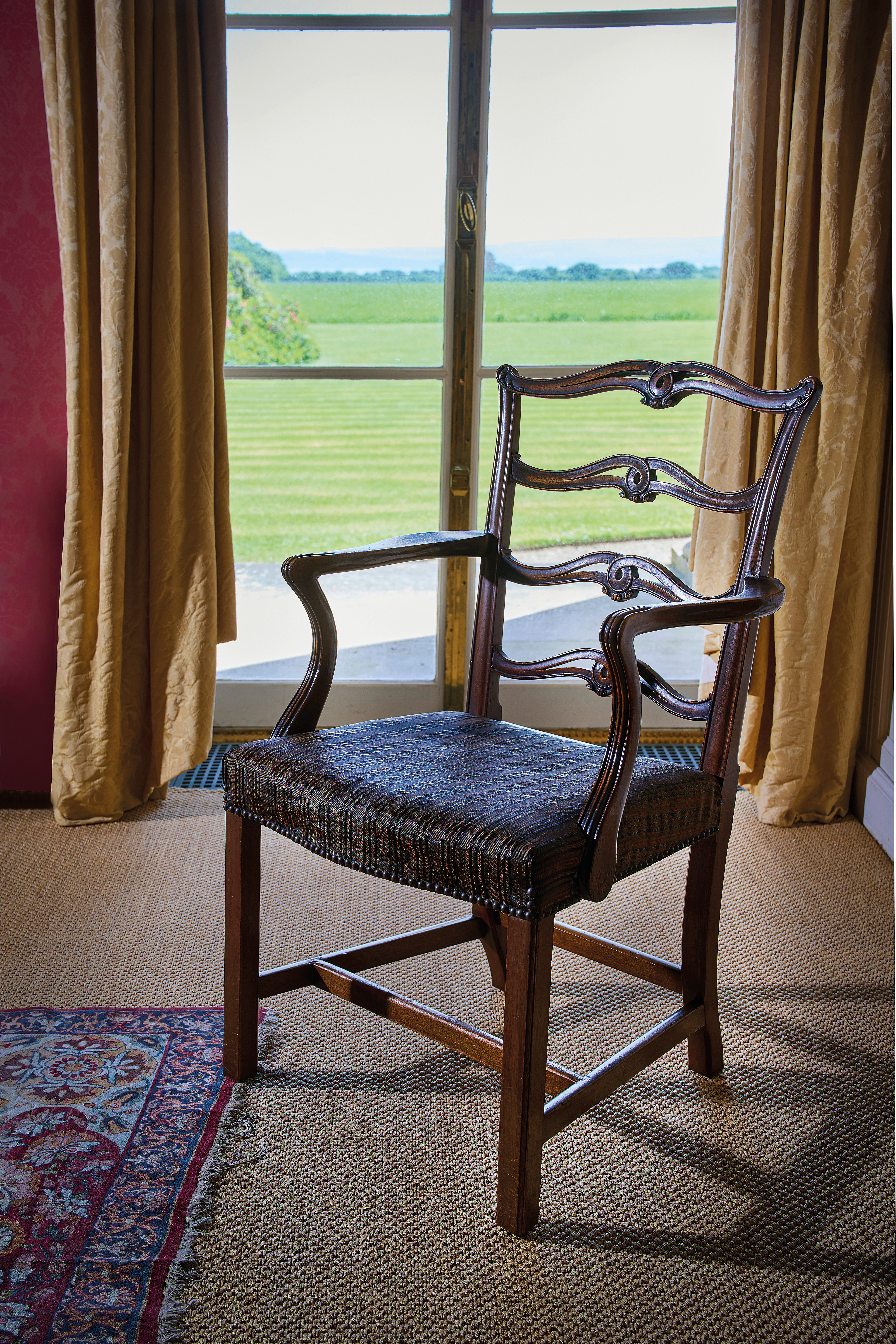 each with a pierced and scroll ladder back, above a stuffed-over seat, on chamfered and moulded legs, the seats covered in horsehair striped fabric, comprising: a pair of open armchairs and twelve side chairs (14)