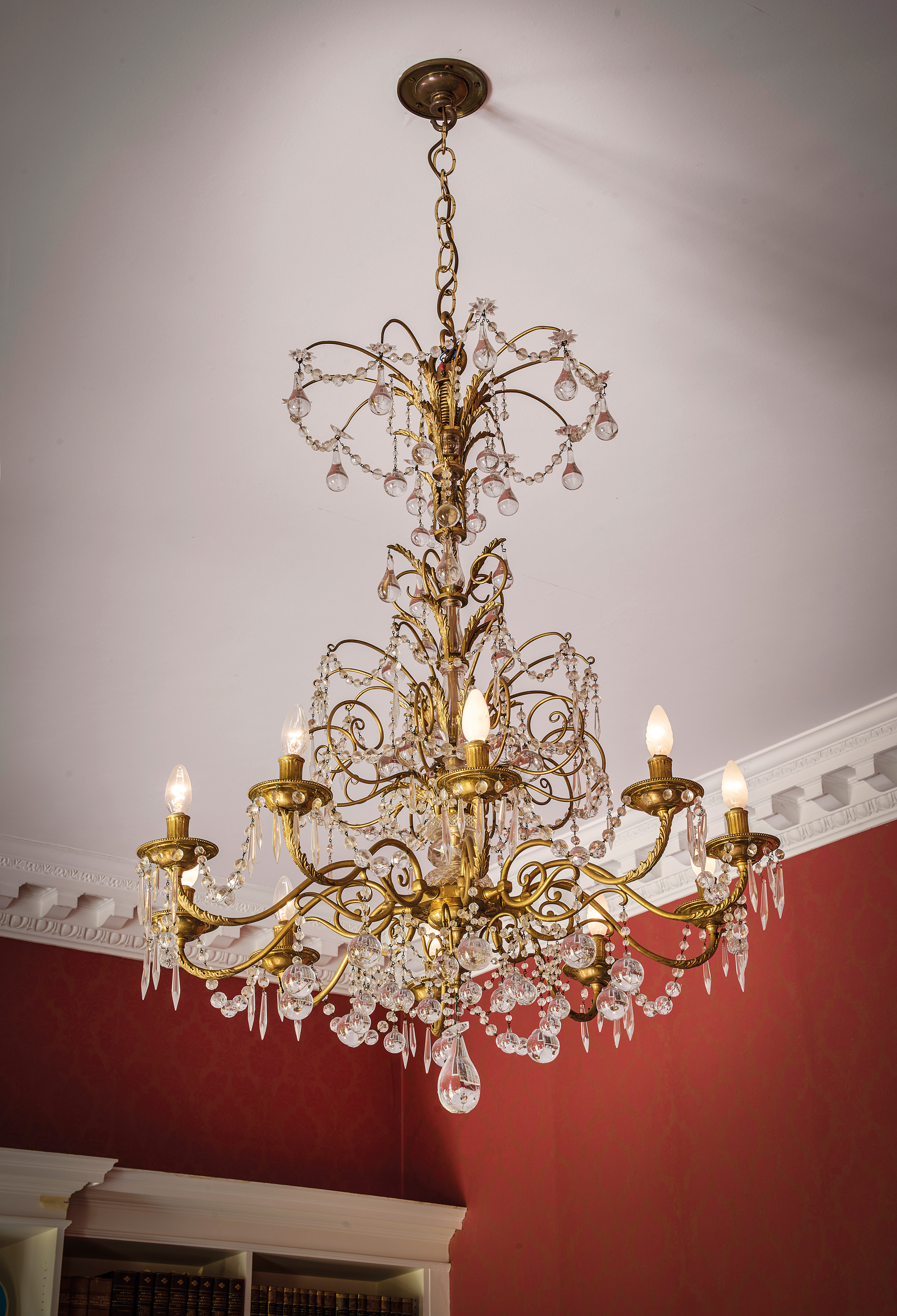 A GILT BRONZE GLASS AND ROCK CRYSTAL CHANDELIER