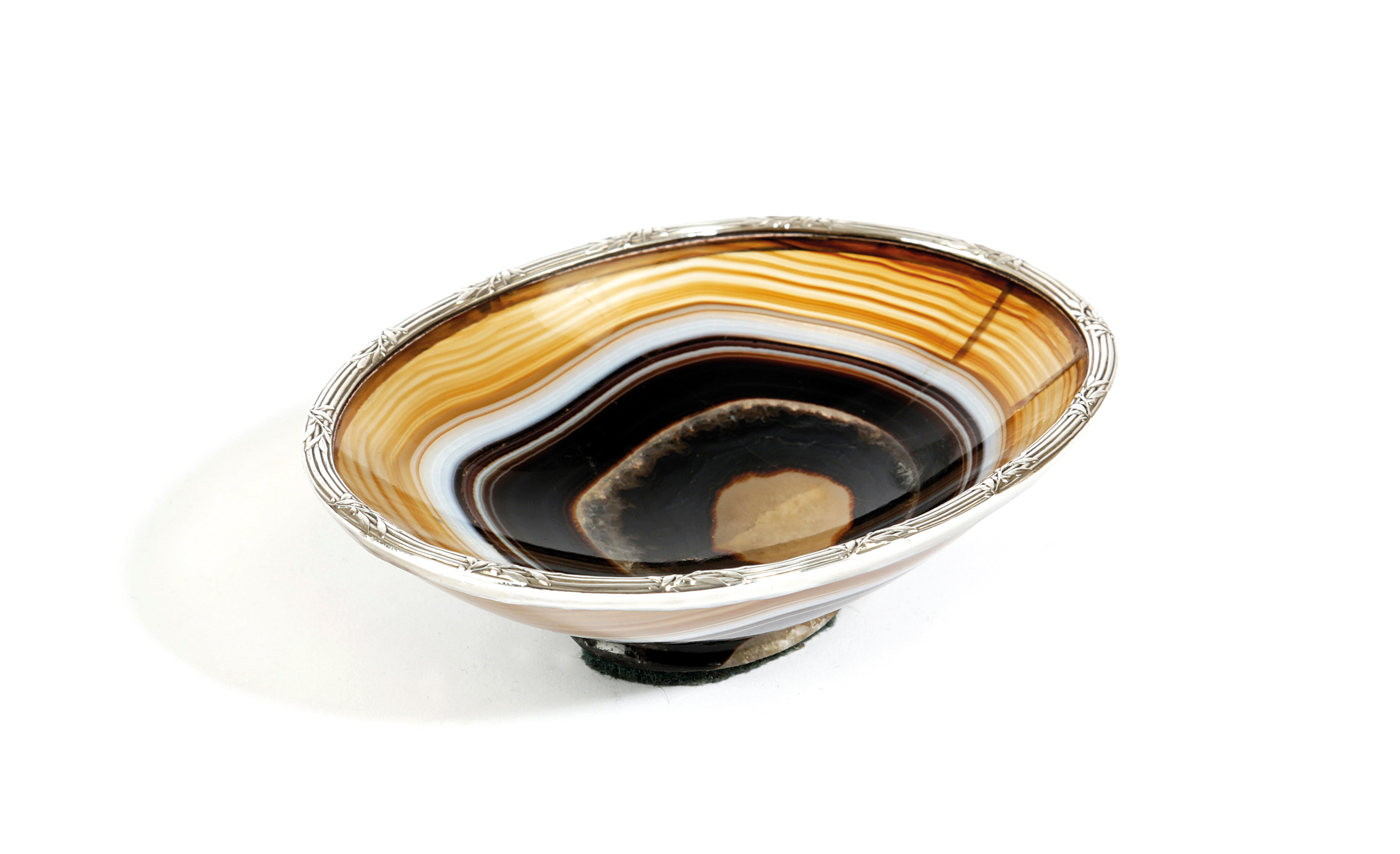 AN AUSTRIAN SILVER-GILT MOUNTED BANDED AGATE DISH