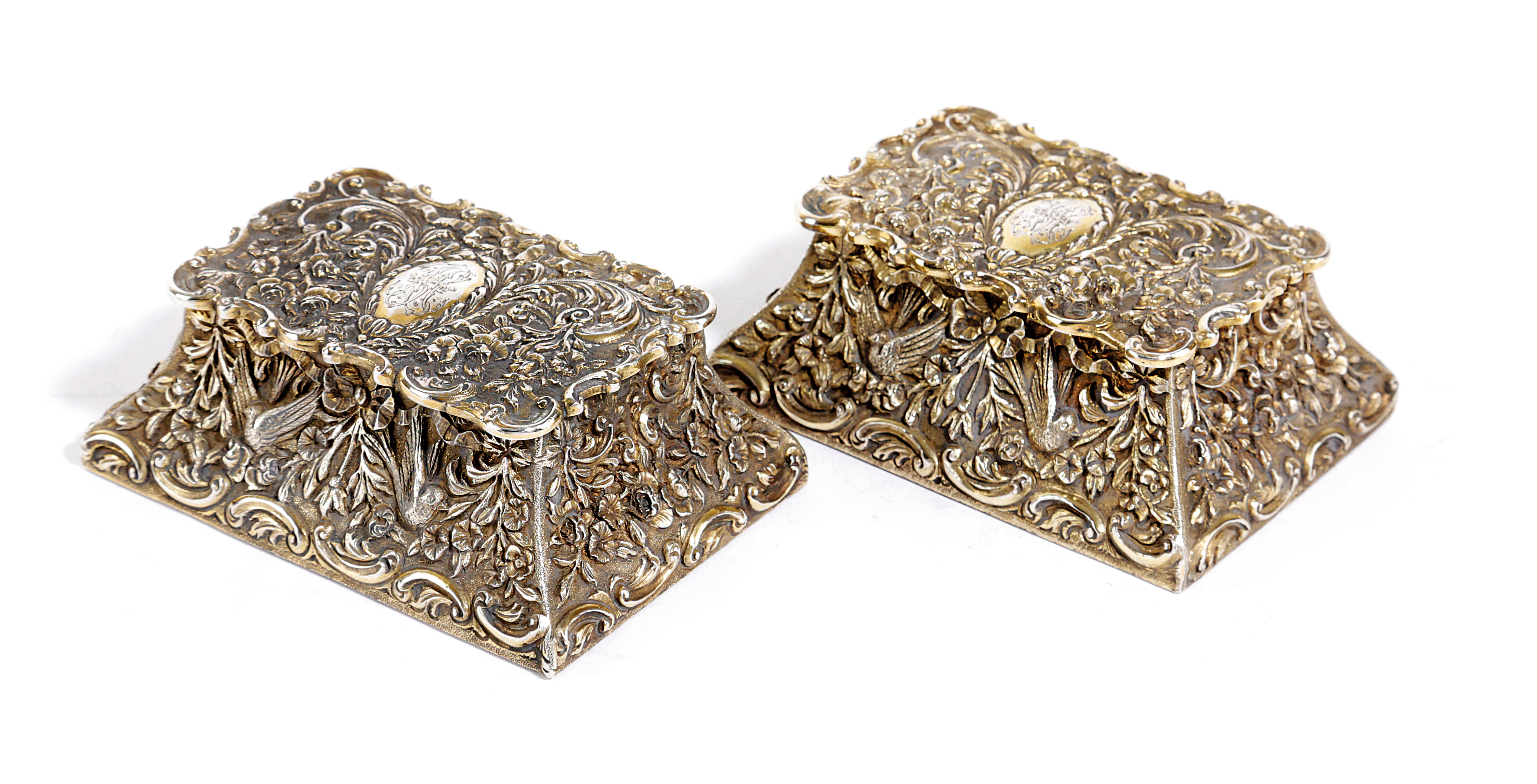 A PAIR OF EDWARDIAN SILVER-GILT DOUBLE STAMP BOXES