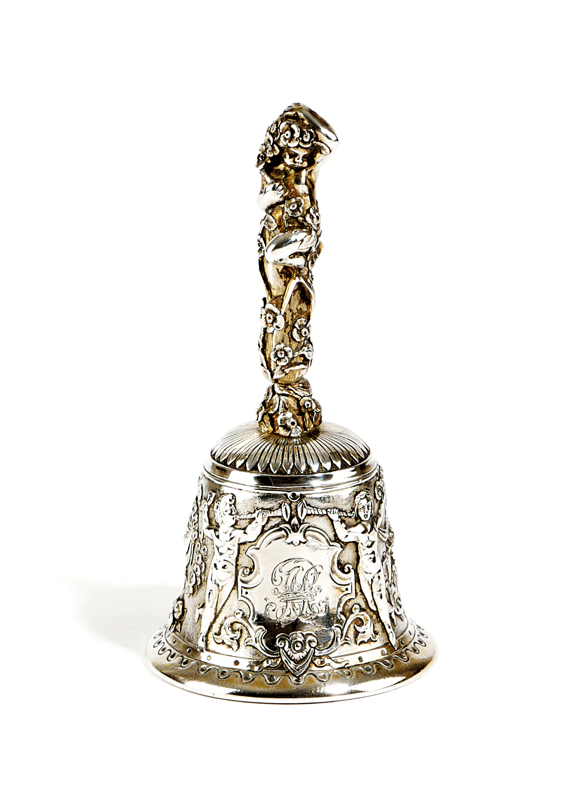 AN EDWARDIAN CAST SILVER-GILT TABLE BELL