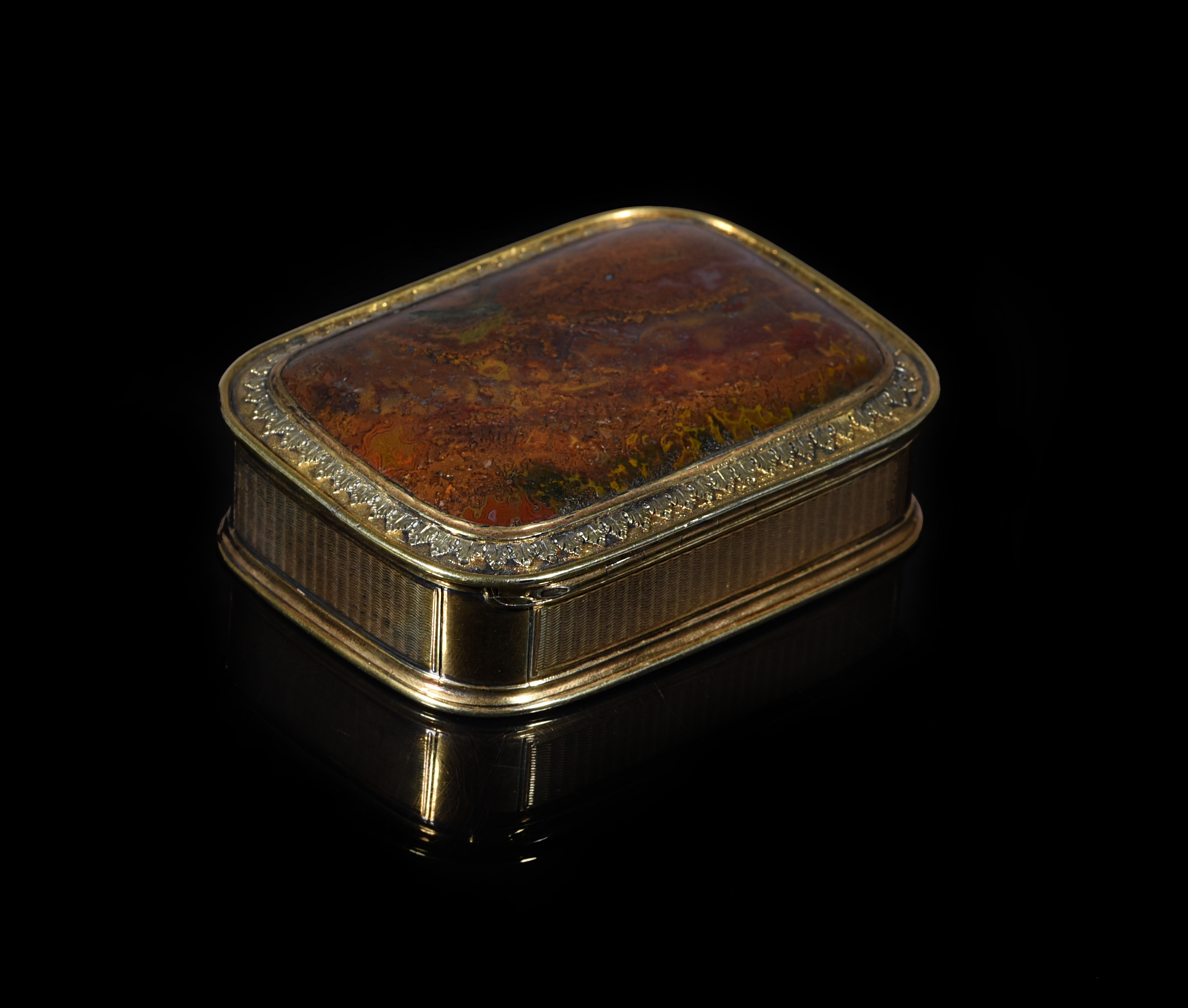 A SILVER-GILT MOUNTED AGATE SNUFF BOX