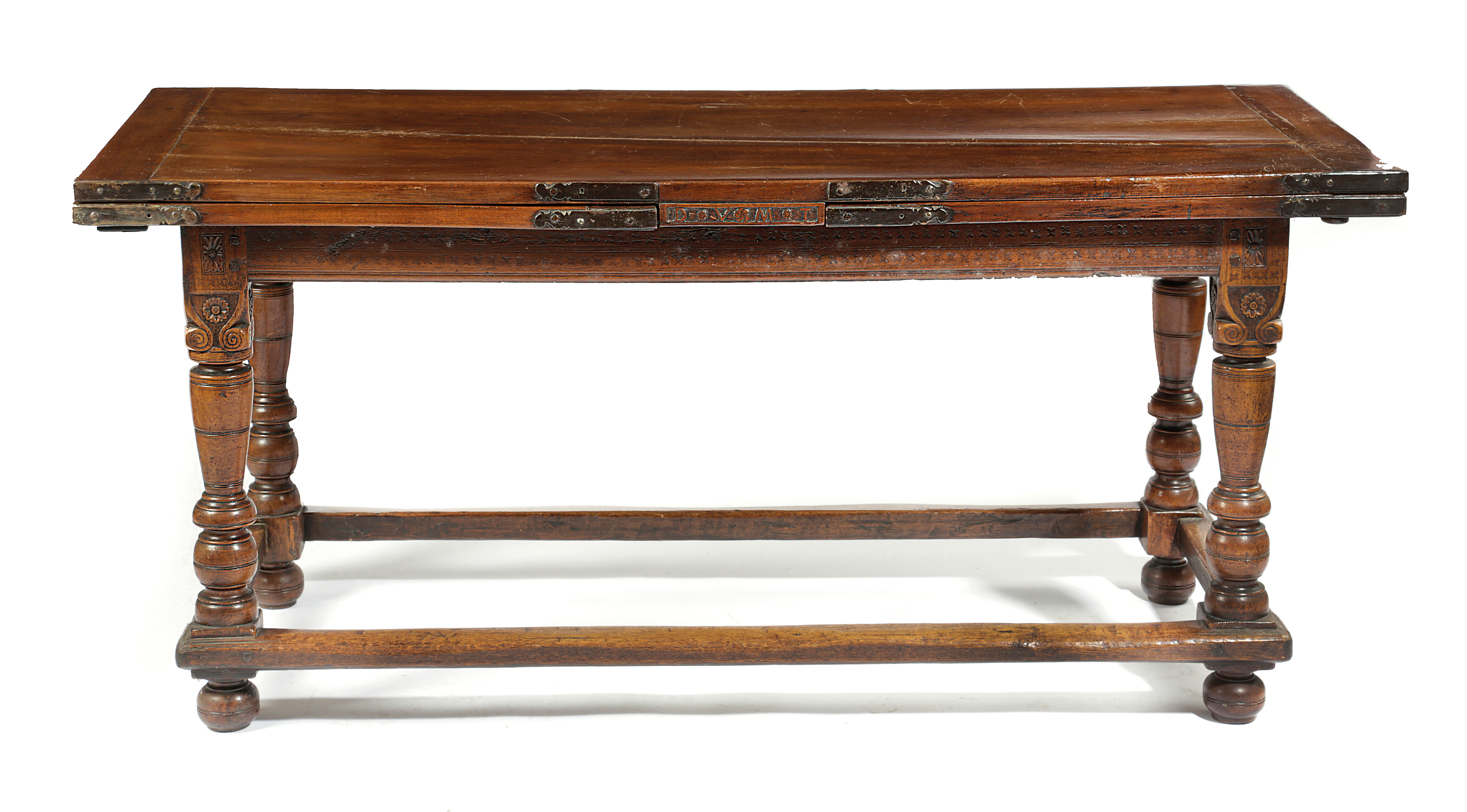 A FRANCO-FLEMISH WALNUT DRAW-LEAF REFECTORY TABLE