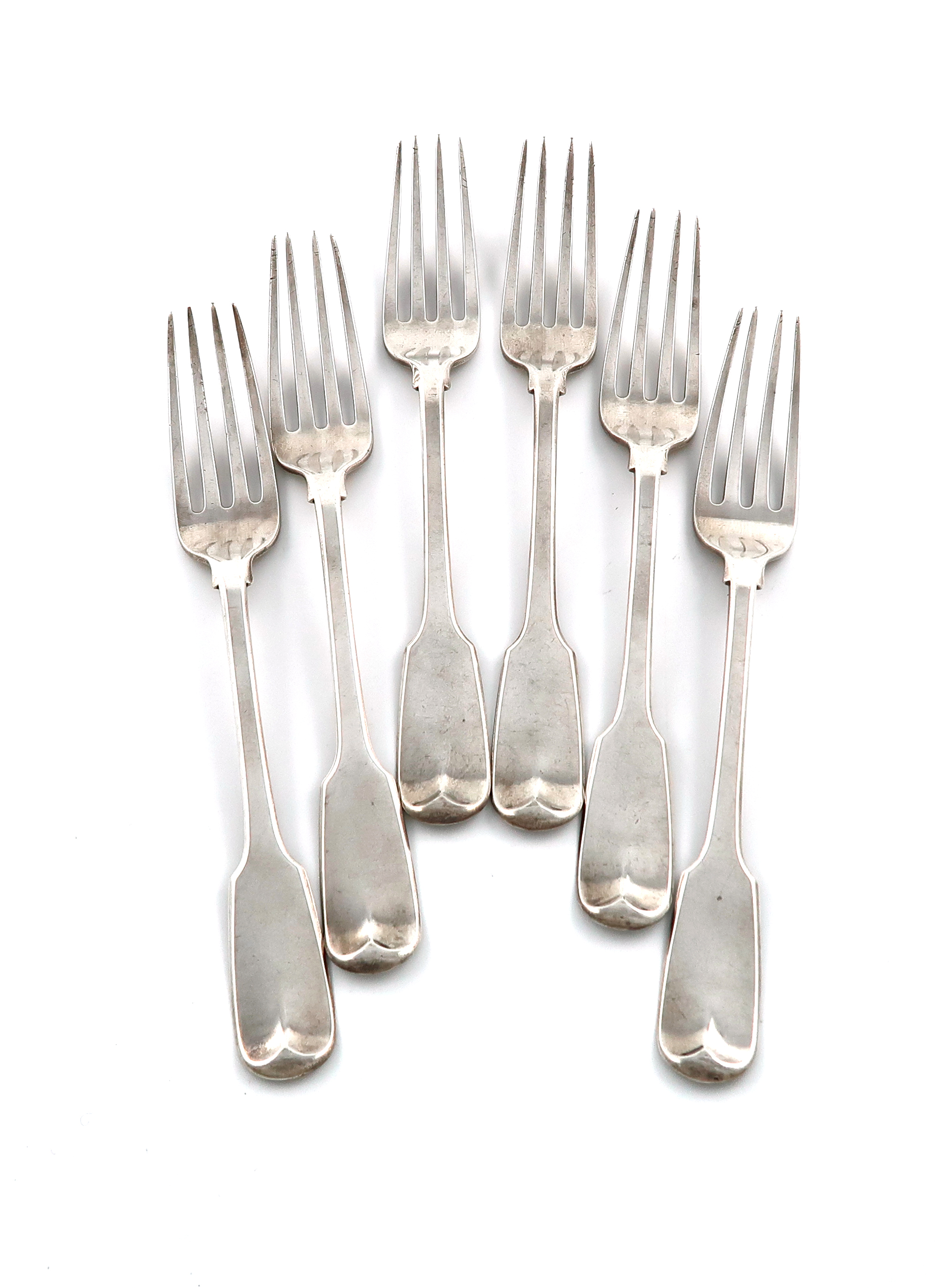 A set of six George III silver Fiddle pattern table forks