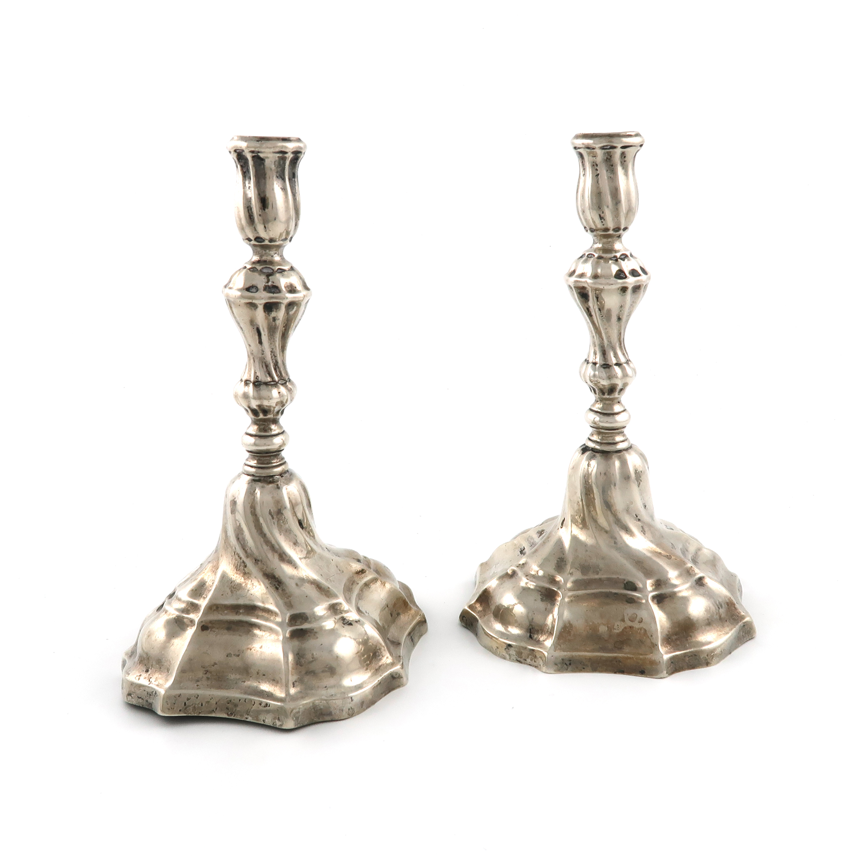 A pair of late 18th century German silver candlesticks