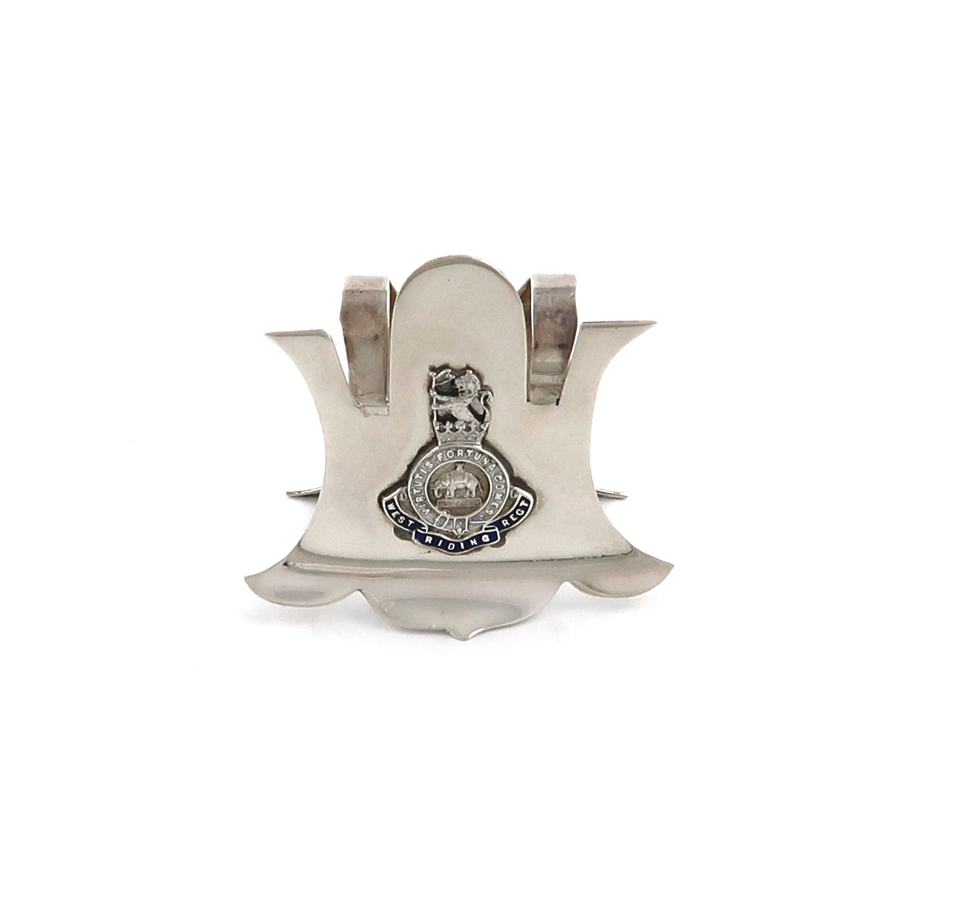 A late-Victorian Regimental silver and enamel menu card holder, The Duke of Wellington's (West Riding Regiment),