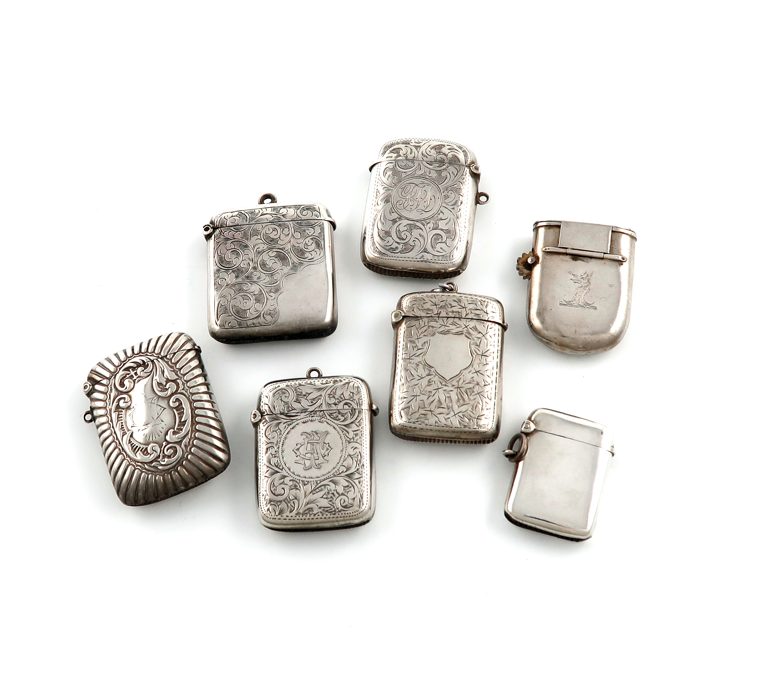 A collection of seven silver vesta cases