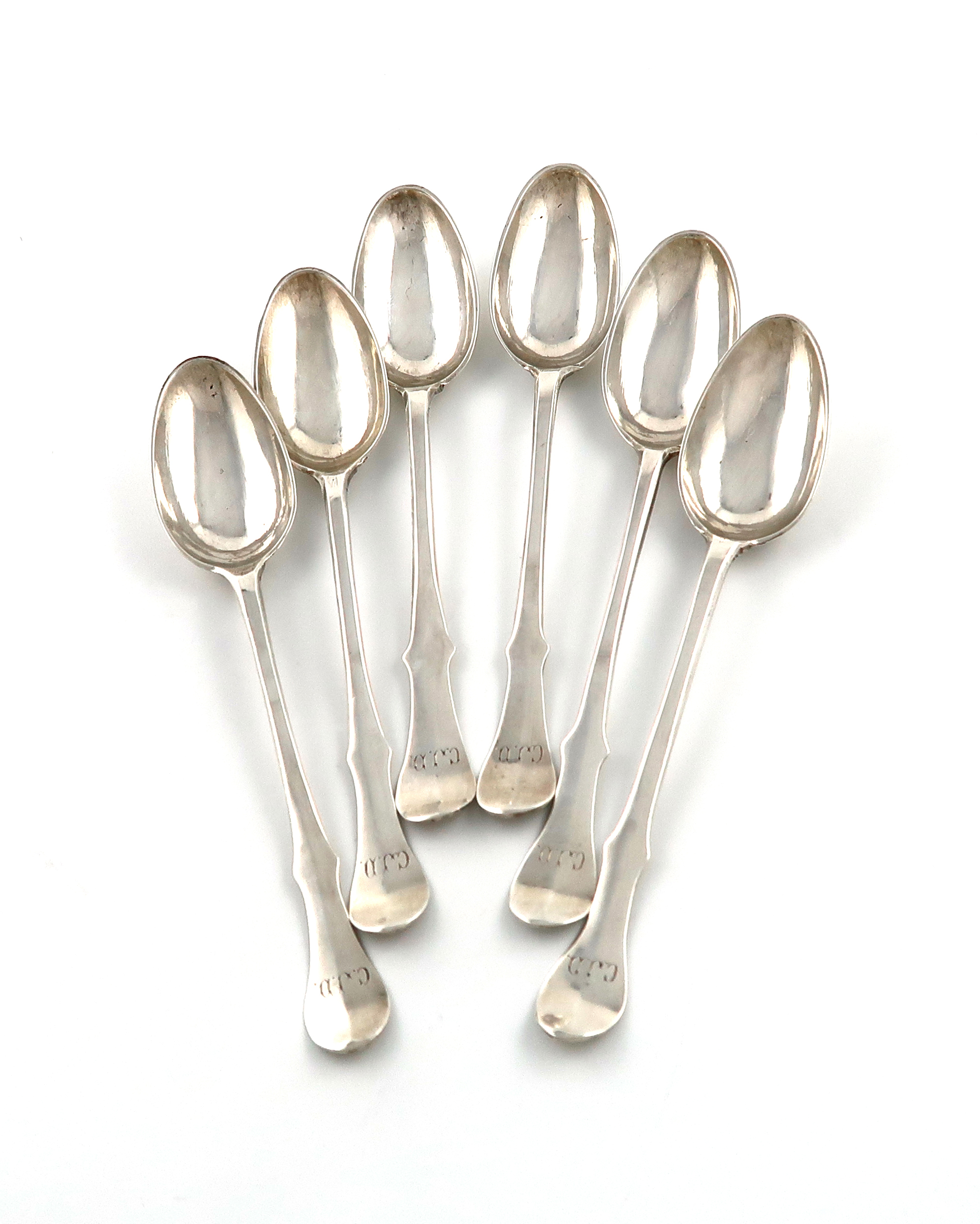 A set of six George III Scottish silver Fiddle pattern teaspoons