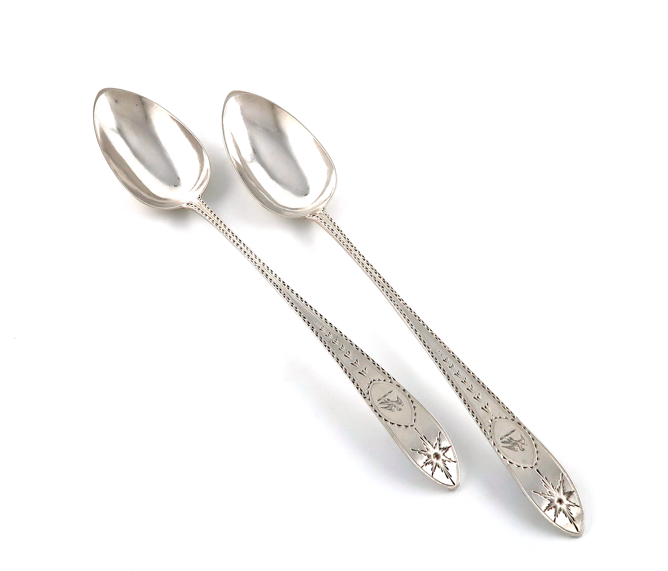 the terminals with star decoration and engraved with a crest, length 31.2cm, approx. weight 6.7oz. (2)