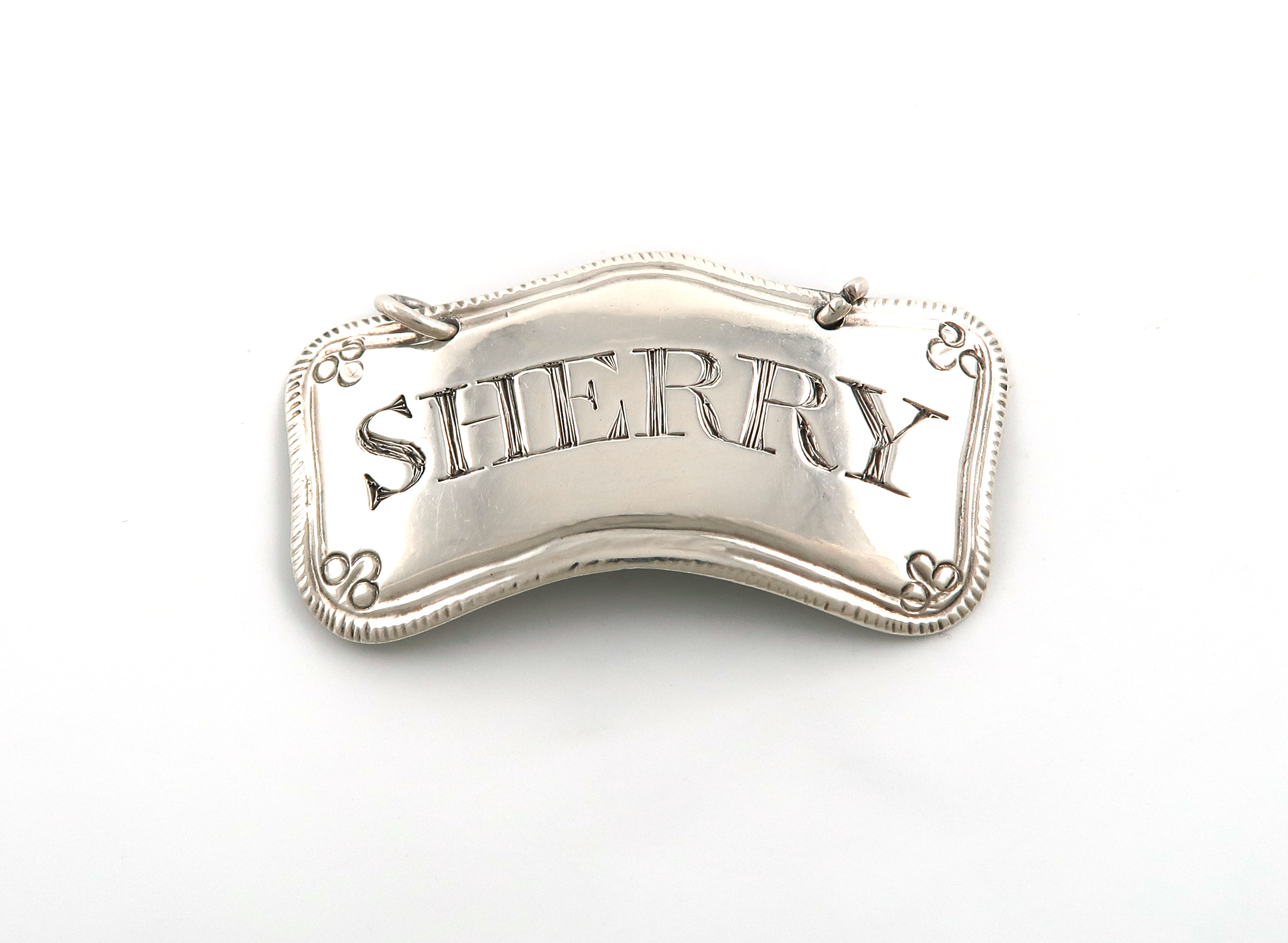 banner form, gadrooned border, incised 'SHERRY', length 4.7cm, approx. weight 0.3oz.