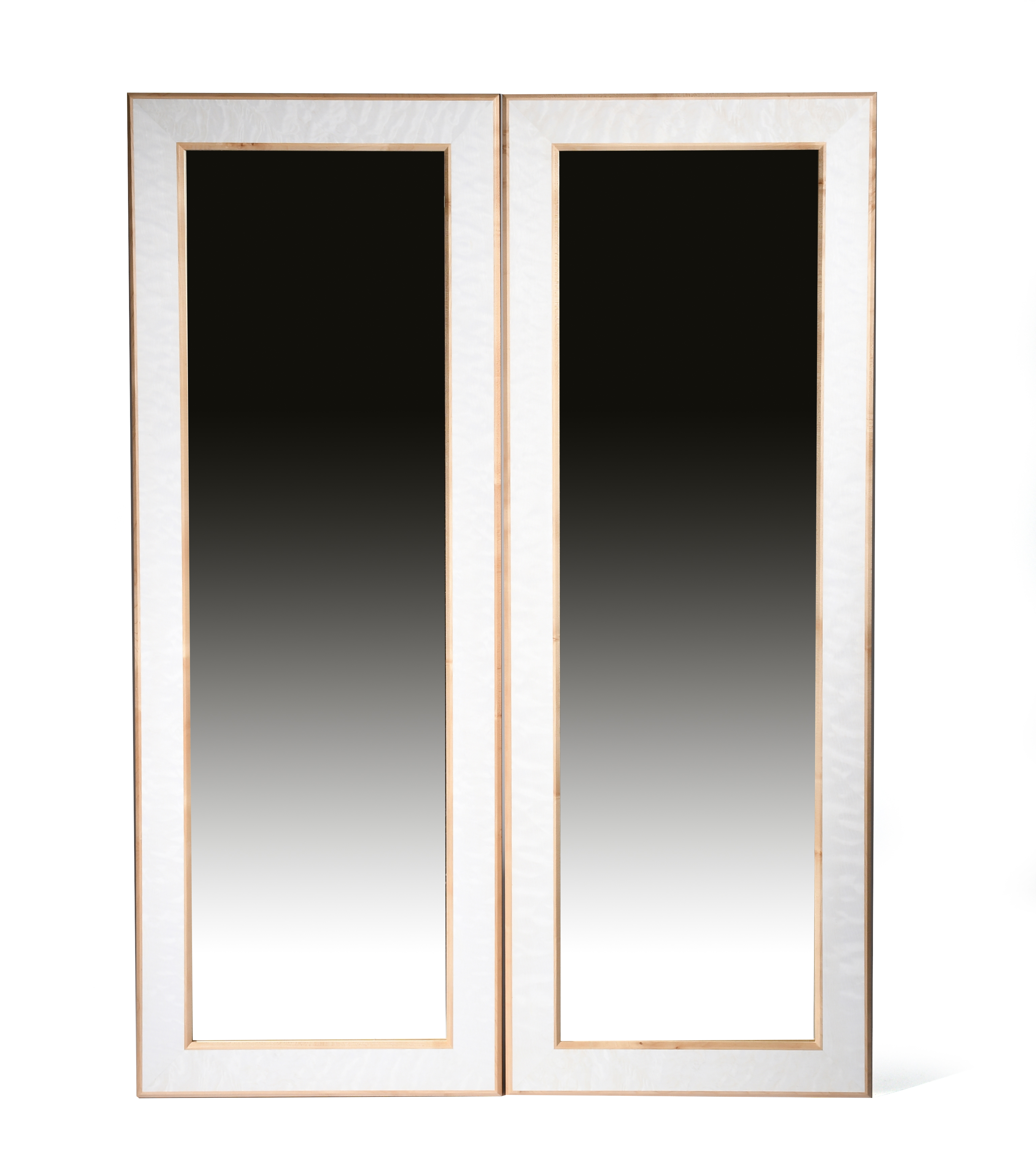 A pair of Linley maple and sycamore dressing mirrors, long, rectangular form,