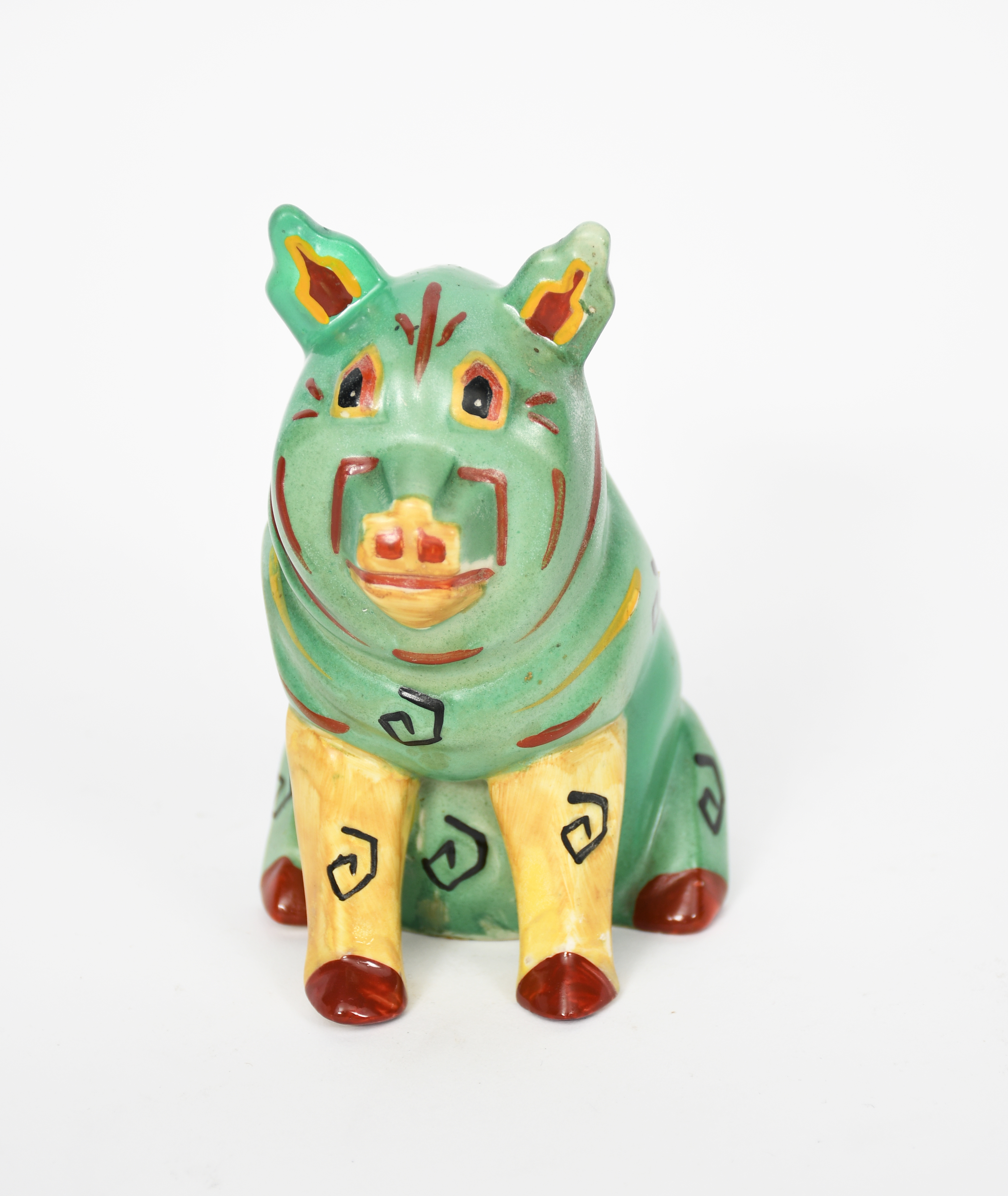 A Louis Wain Lucky Pig spill vase, painted in colours impressed factory marks, facsimile signature, professional restoration to ear, 11.5cm. high