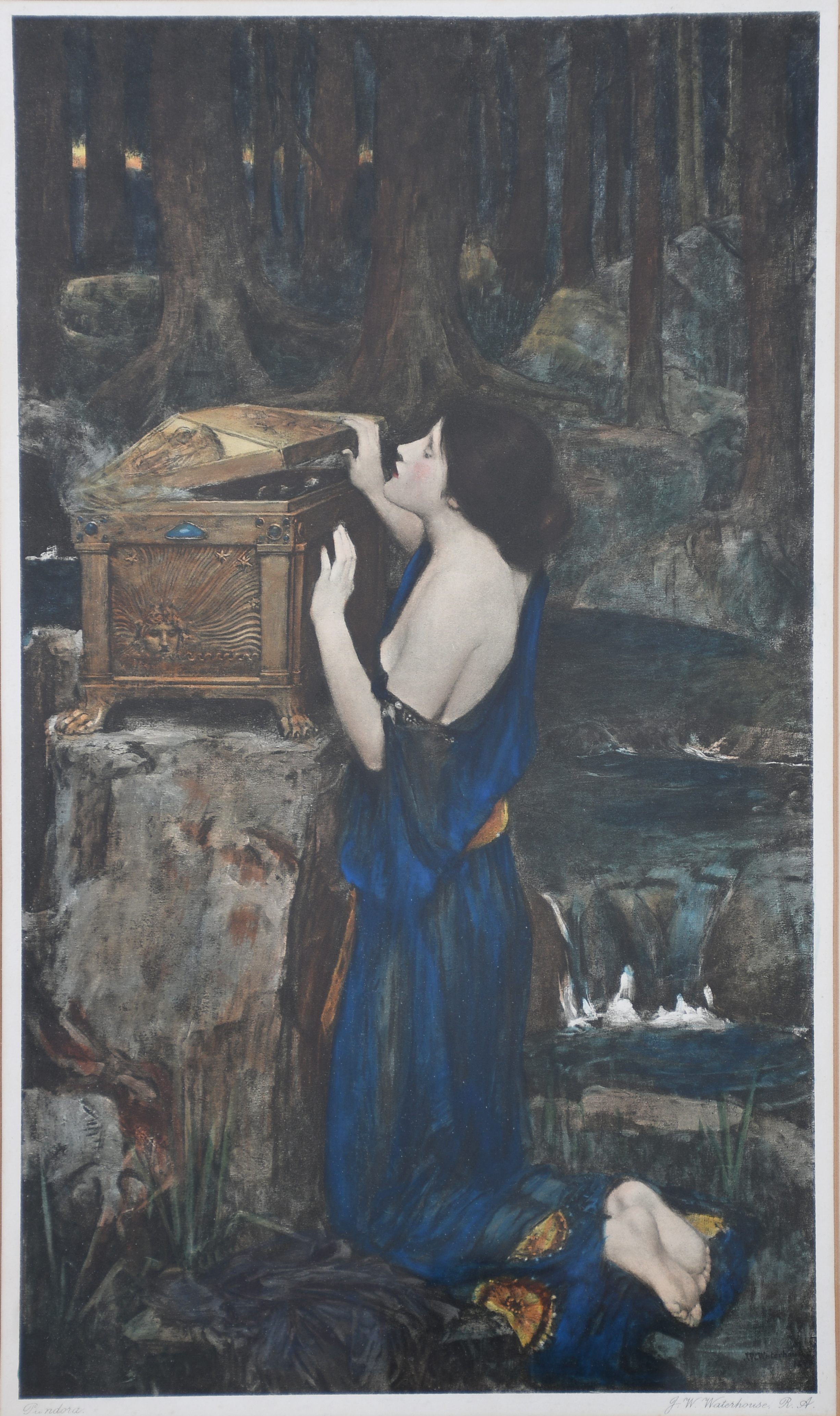 colour lithographic print on paper, framed, and 'Bathing Poole' by M Mende, dated 1925