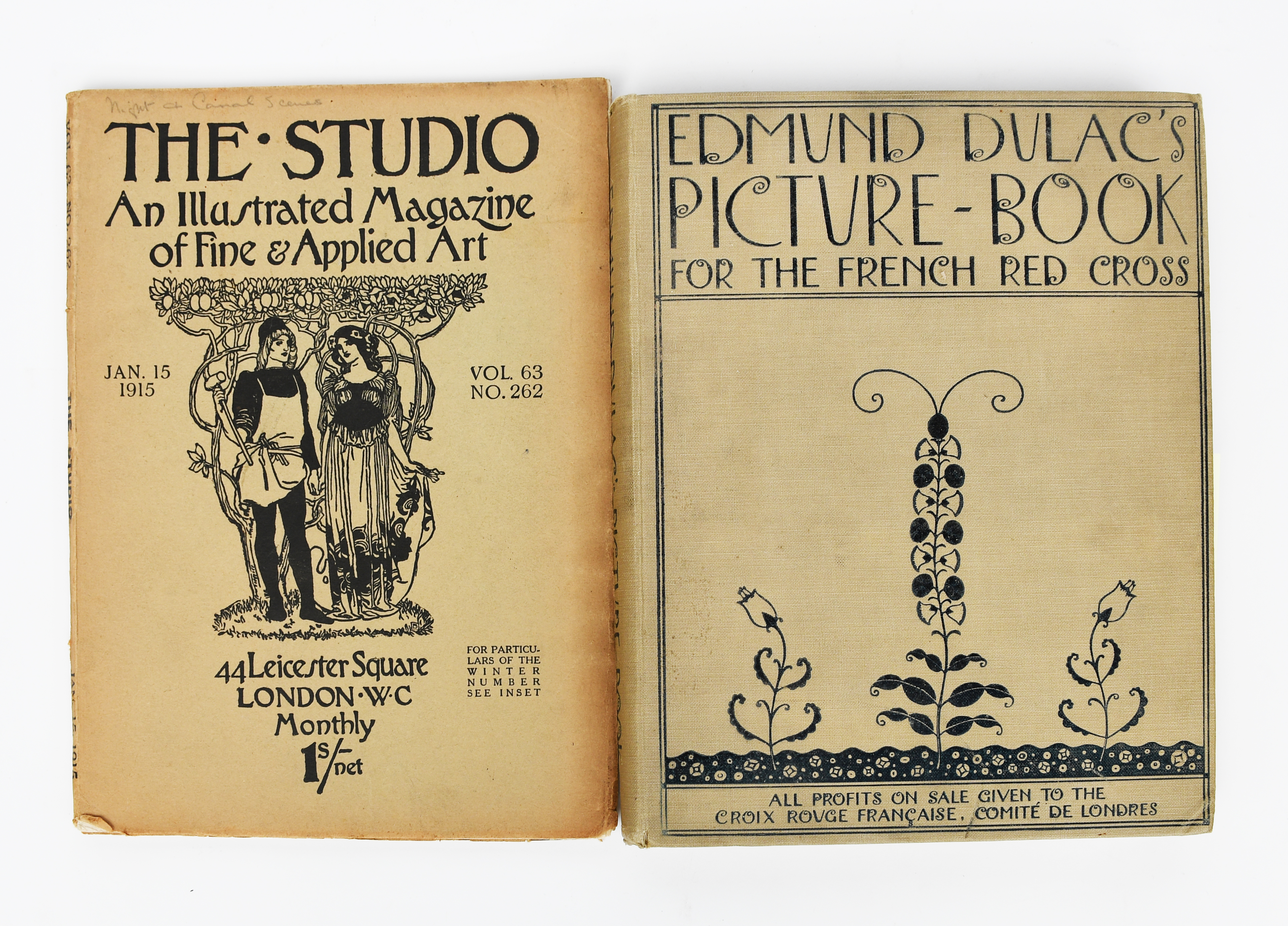 'The Studio' four volumes including for 1899, twenty one loose studio magazines, three bound scrap volumes of images from the studio and Edmund Dulac's Picture Book for the French Red Cross, circa 1916, (29)